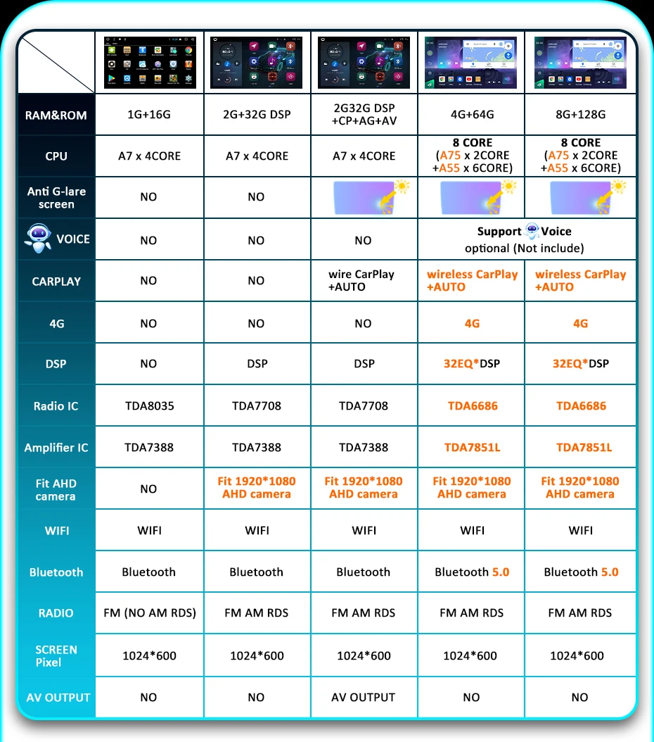 DSP (только 4G + 64G /8G + 128G имеет 32EQ)DSP = Система цифрового усилителя. Он делает звук лучше, чем раньше, и делает радиосигнал лучше, чем раньше. Только менее высокая версия автомобиля имеет заводскую систему DSP на рынке. Если вы покупаете этот чип. В будущем у вашего автомобиля будет DSP система.