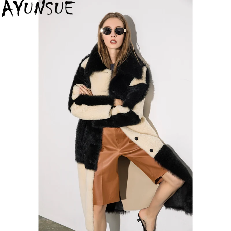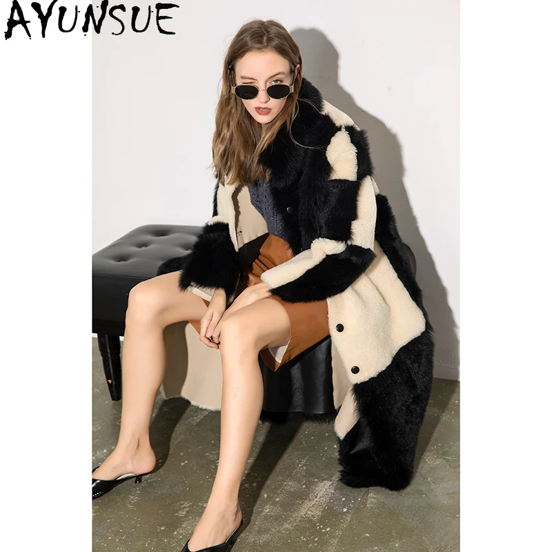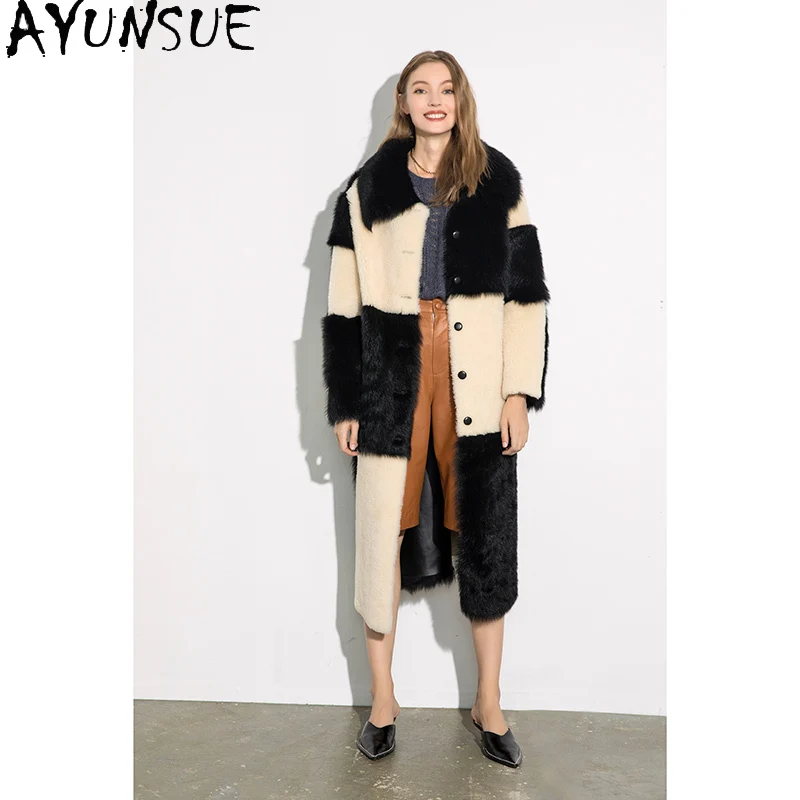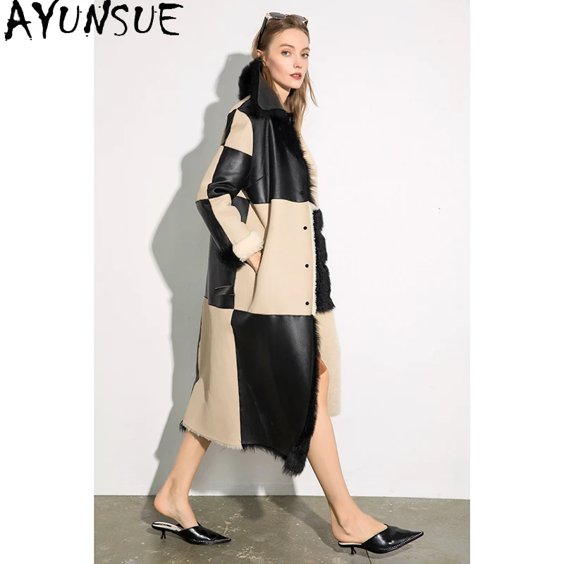 AYUNSUE Женское пальто из натурального меха овчины женская куртка длинная мотоциклетная куртка из натуральной кожи Зимняя 2020 пальто Mujer 231