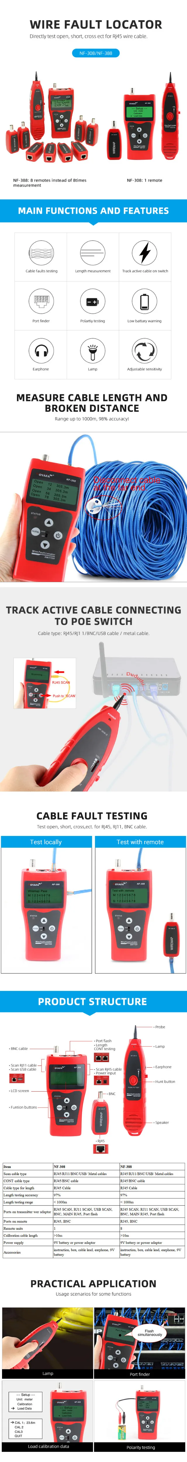 NOYAFA стандартное измерение сетевого кабеля локальной сети, длина кабеля, проверка целостности цепи, проводной трекер BNC RJ45 RJ11, проверка кабеля Ethernet, мониторинг