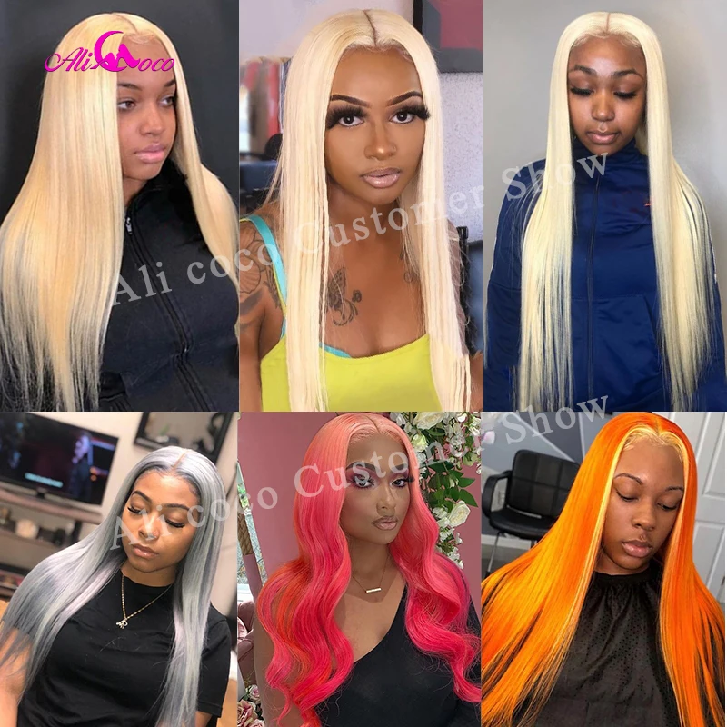 Прозрачный 613 Мёд блондинка 13x4 кружева передние парики для волос Красочные бразильские прямые человеческие волосы полные парики фронта шнурка