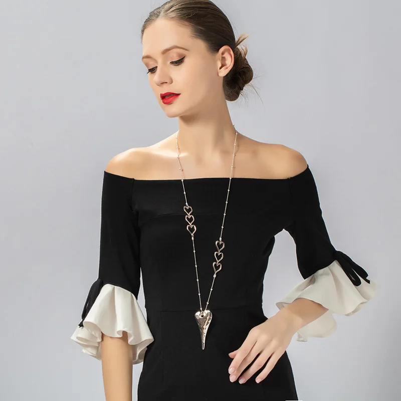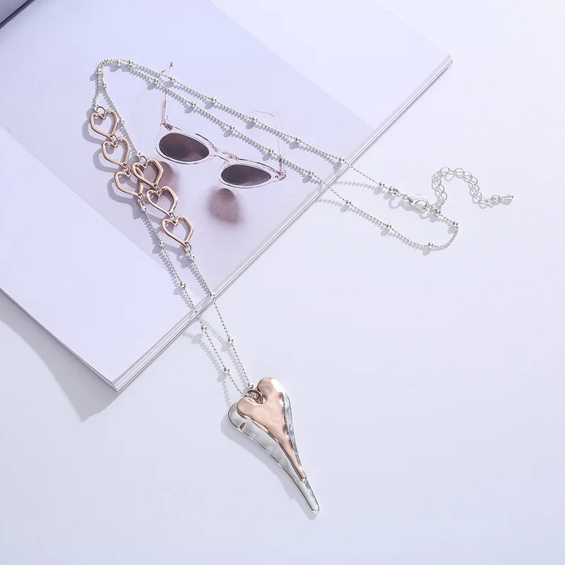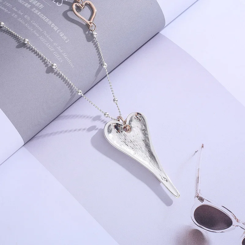 Женское Ожерелье ELOYHI, простое, с большим сердцем, двухцветное, массивное ювелирное изделие, цепочка из бисера, длинное ожерелье для женщин, винтажные подвески для ожерелий