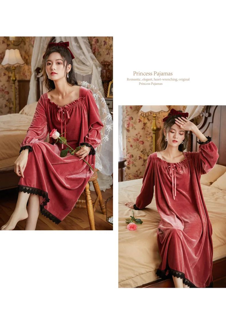 Сексуальная Женская велюровая Ночная рубашка в дворцовом стиле, кру...