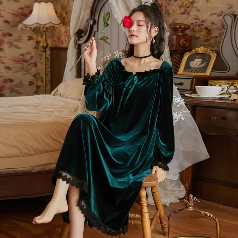 Зеленая бархатная ночная рубашка, ночная рубашка принцессы, женская...