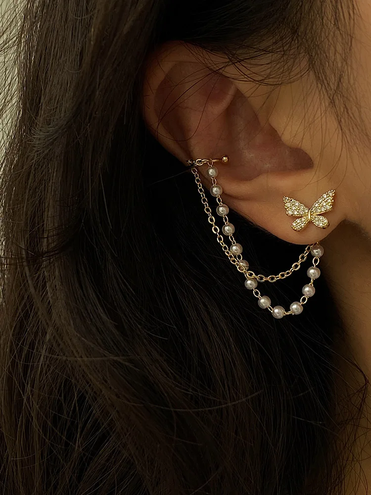 Бабочки кистона чки манжетах цепь гусеничный климер серьги для женщ...