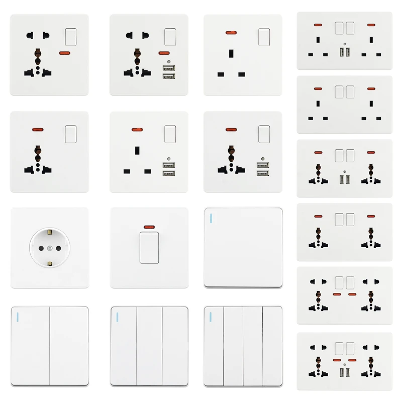 5 отверстий 13A с универсальным разъемом из 2.1A Dual USB Wall Мощность разъем 2 Pin 3 шпильки белый Пластик одиночный двойной разъем DE ЕС FR tomada usb parede,tomada com usb,adaptador,tomadas eltricas,soquete