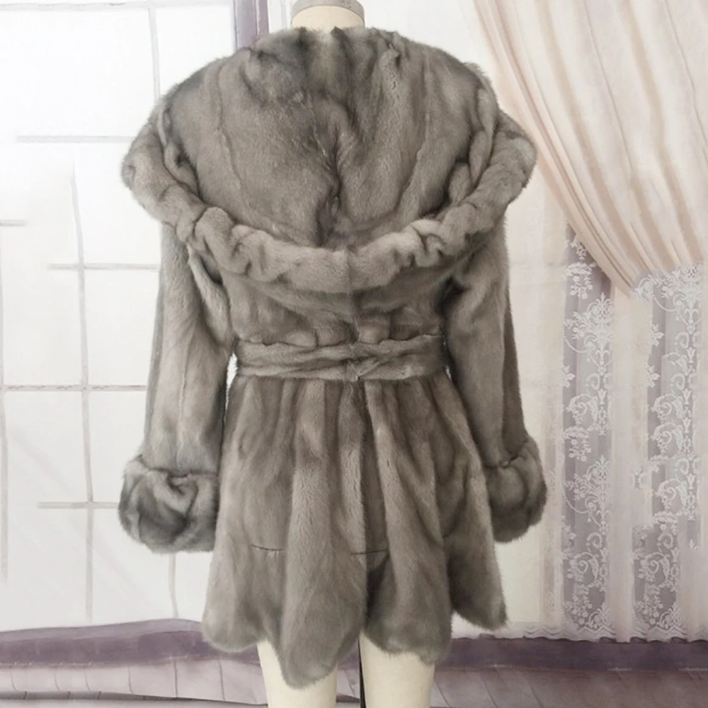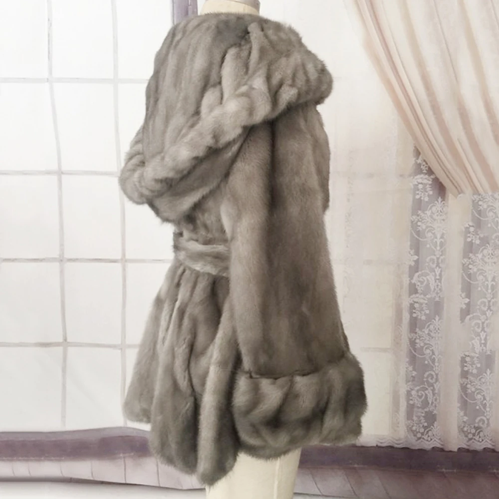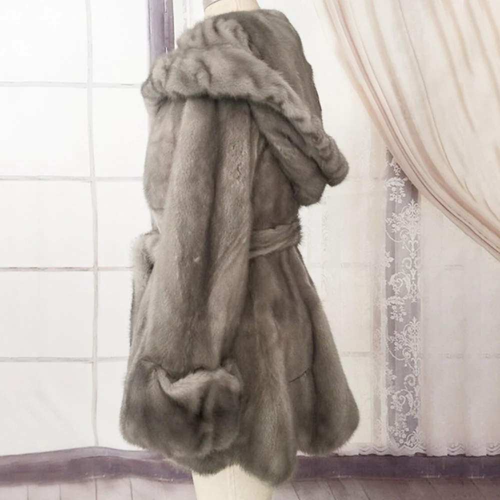 Женская куртка из шуба из натуральной норки натурального меха, с длинным рукавом и капюшоном, зимняя теплая приталенная куртка из толстое с поясом натурального меха норки