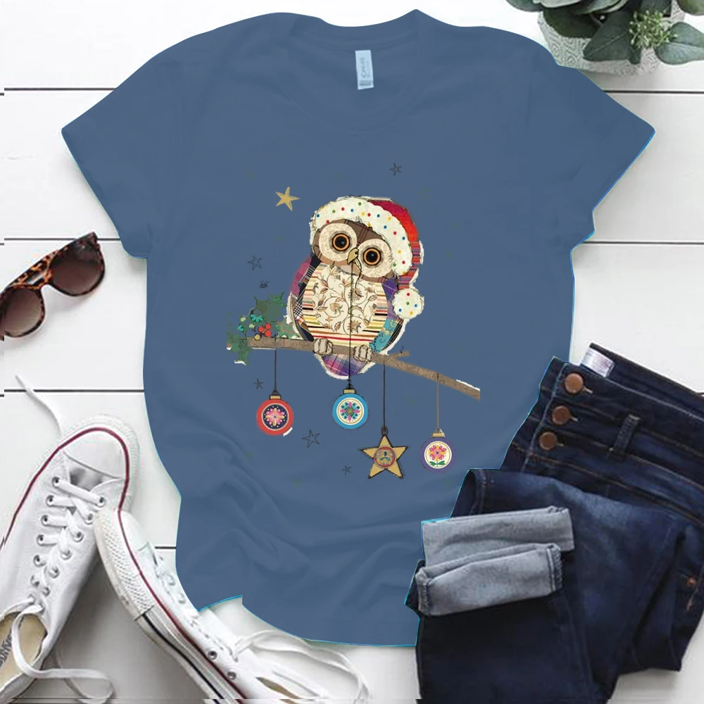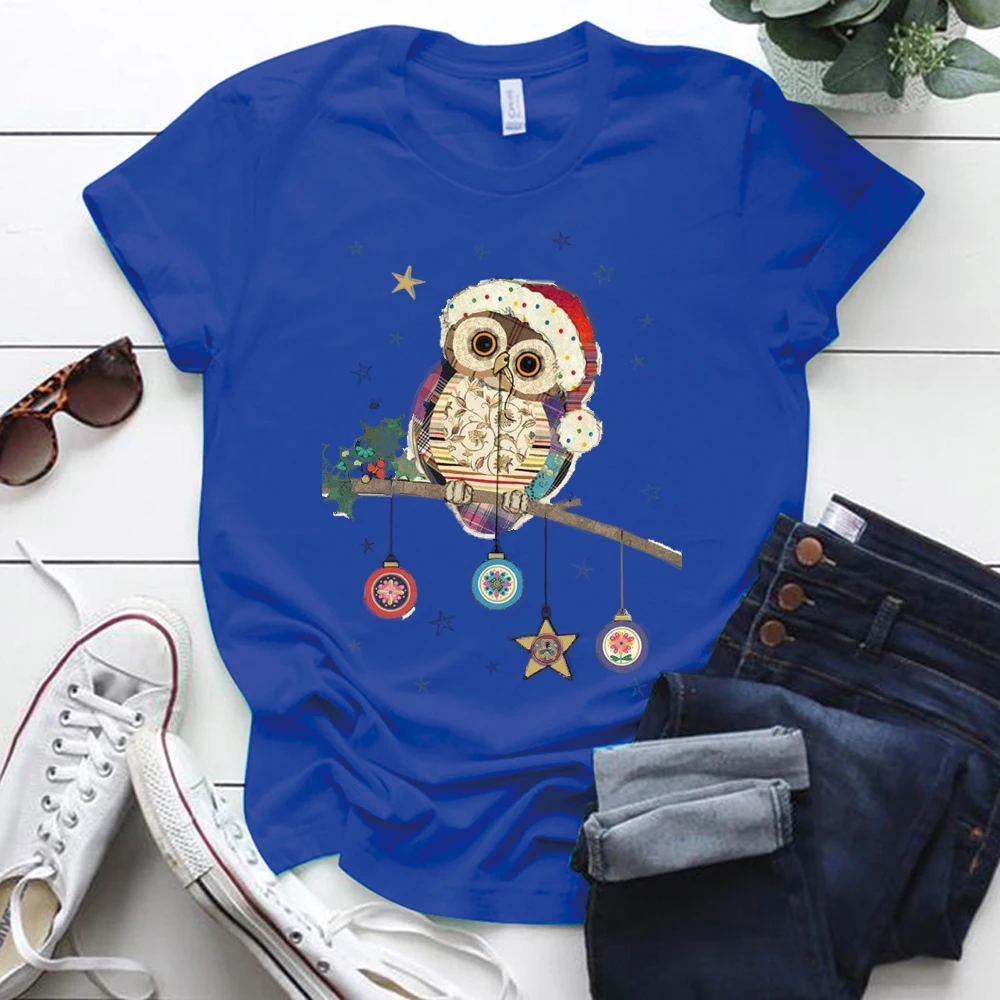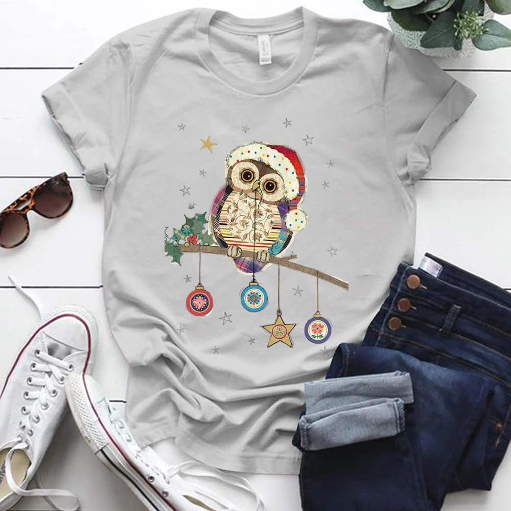 Забавные милые рождественские футболки с принтом совы для женщин, большие размеры, женские футболки, рождественский подарок для дам, топы Y2k
