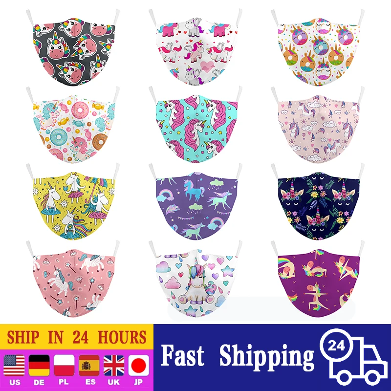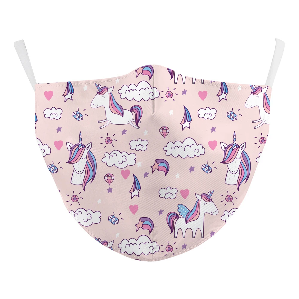 Детская маска с рисунком единорога, маска для лица, Пыленепроницаемая маска для рта, моющаяся маска для детей