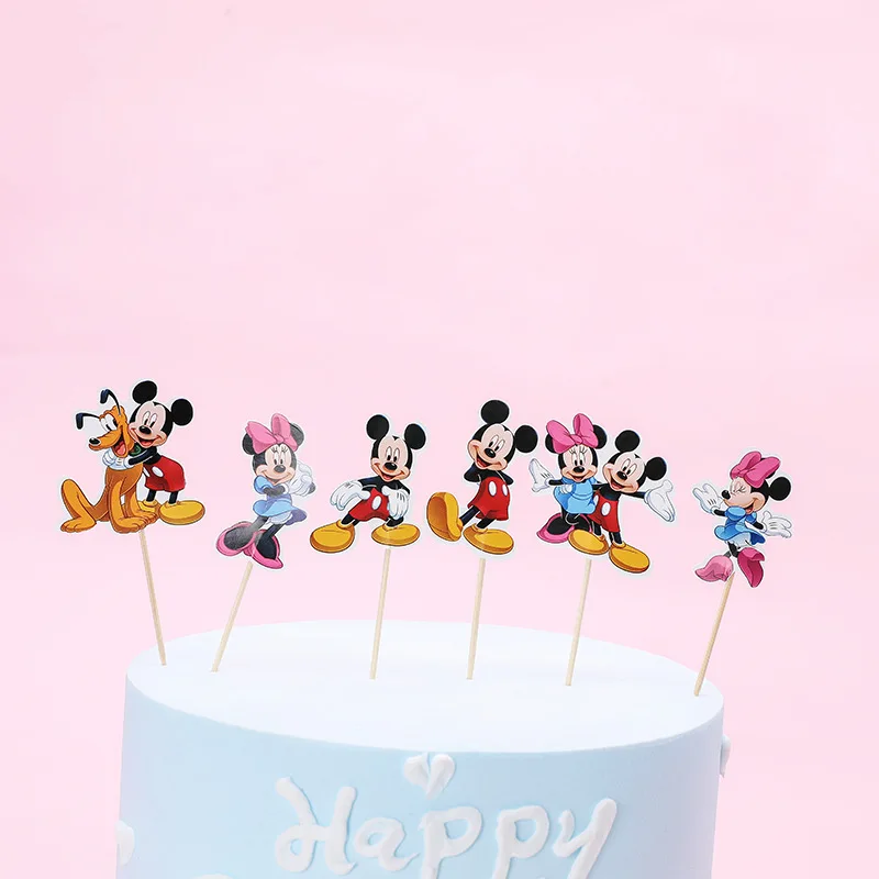Топперы для капкейков с мультяшным Микки и Минни Маусом, 24 шт., розовые товары вечерние, детские украшения для торта на день рождения, вечеринку, свадьбу, Baby Shower