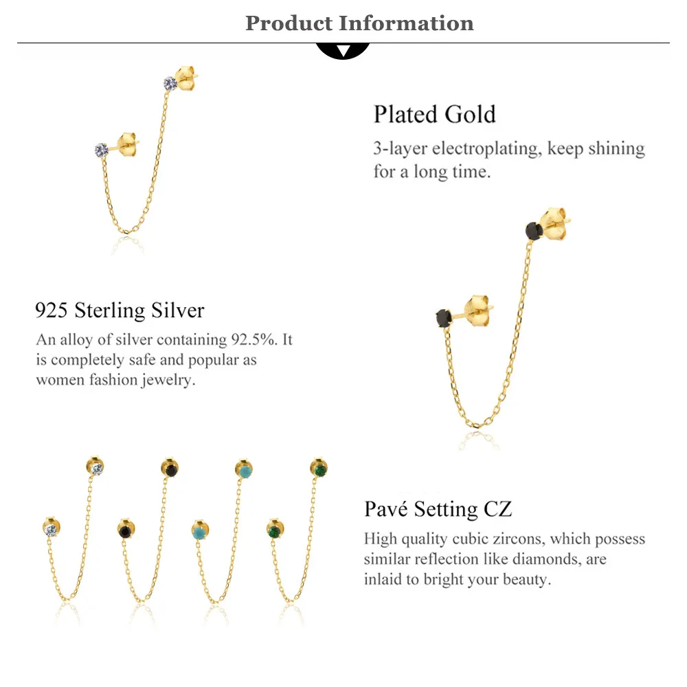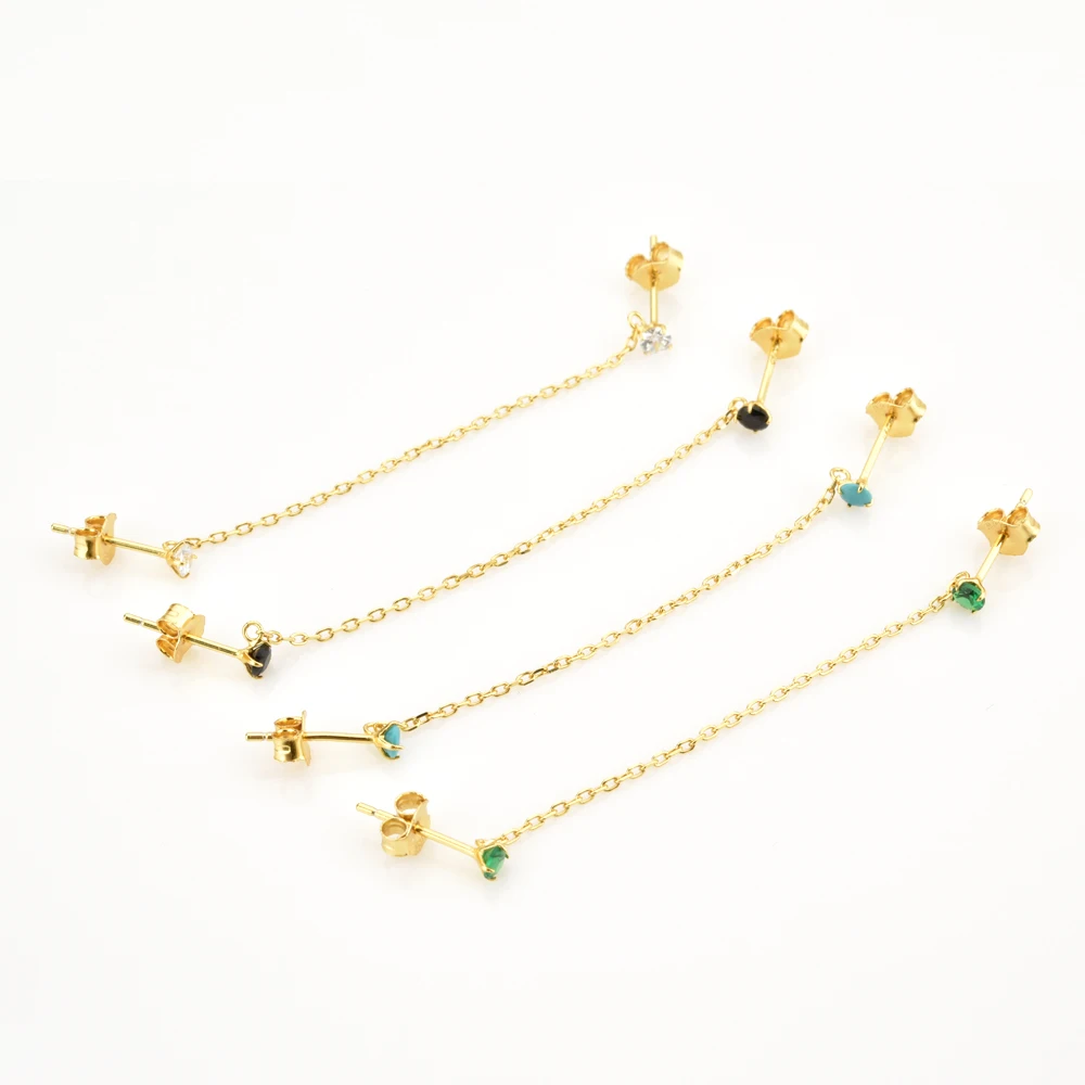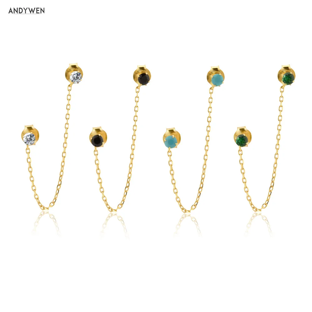 Женские серьги-гвоздики на цепочке ANDYWEN, из серебра 925 пробы с двумя фианитами, 2020