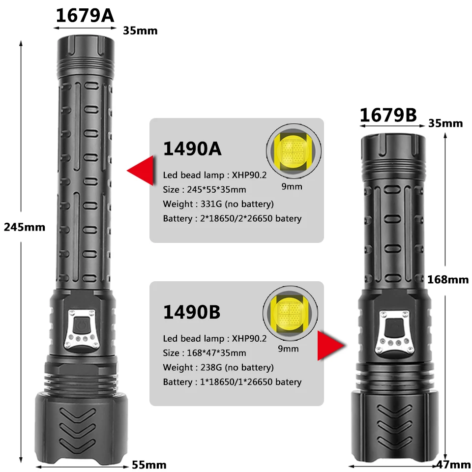 Xhp90.2 Высококачественный светодиодный фонарик Usb Перезаряжаемый ...