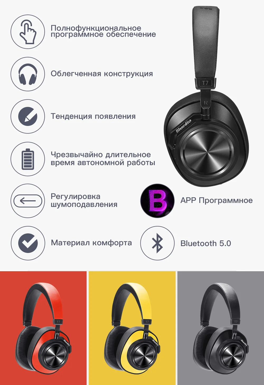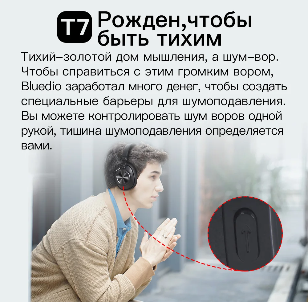 Беспроводные наушники Bluedio T7, наушники с поддержкой Bluetooth 5,0, с функцией активного шумоподавления, с 57 мм излучателями
