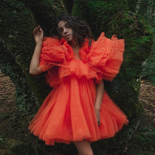 Очаровательные оранжевые короткие тюлевые платья, женские очень пышные трапециевидные гофрированные наряды на заказ, рождественские тюлевые вечерние платья