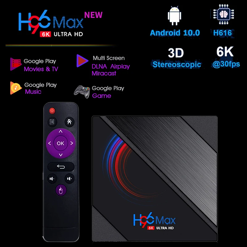 Приставка Смарт-ТВ H96 MAX H616 Allwinner, 4 + 64 ГБ, 2,45,8 ГГц, Wi-Fi