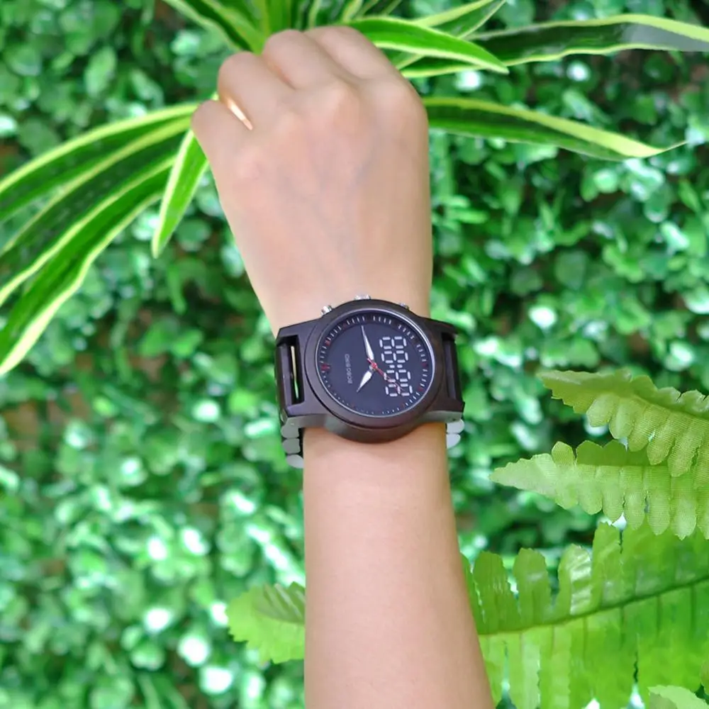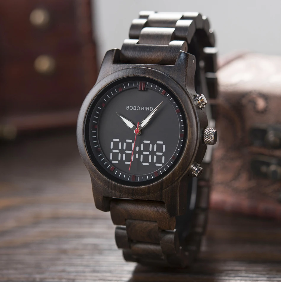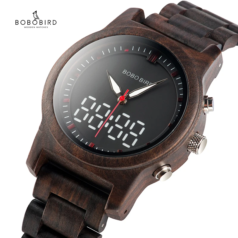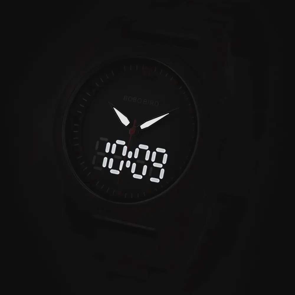 Наручные часы BOBO BIRD, деревянные, со светящимися стрелками, с двойным дисплеем
