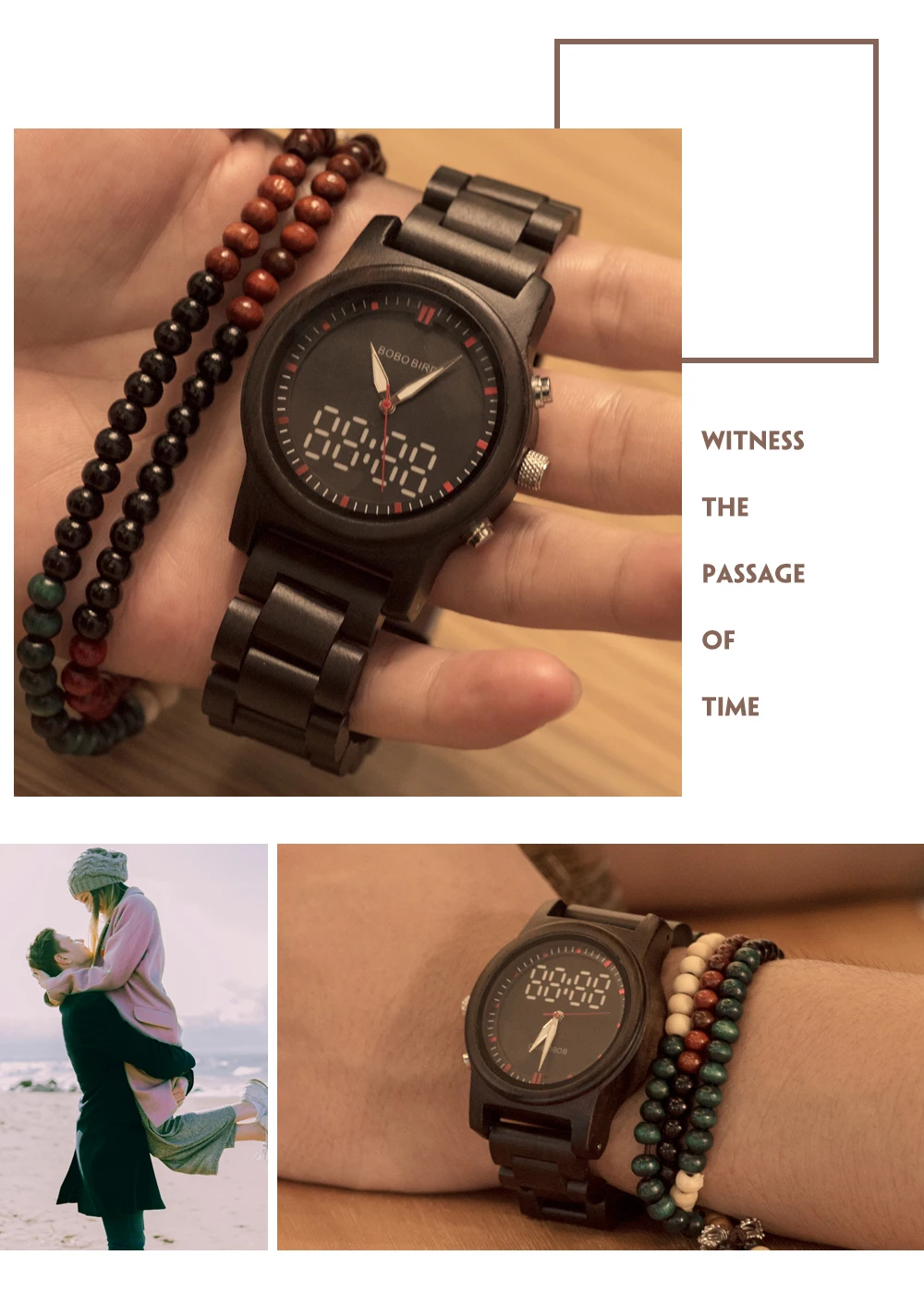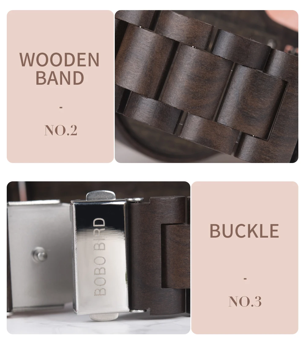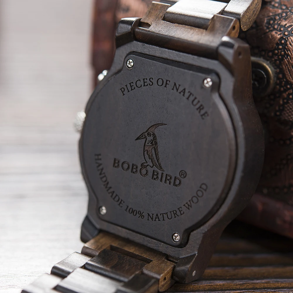 Наручные часы BOBO BIRD, деревянные, со светящимися стрелками, с двойным дисплеем