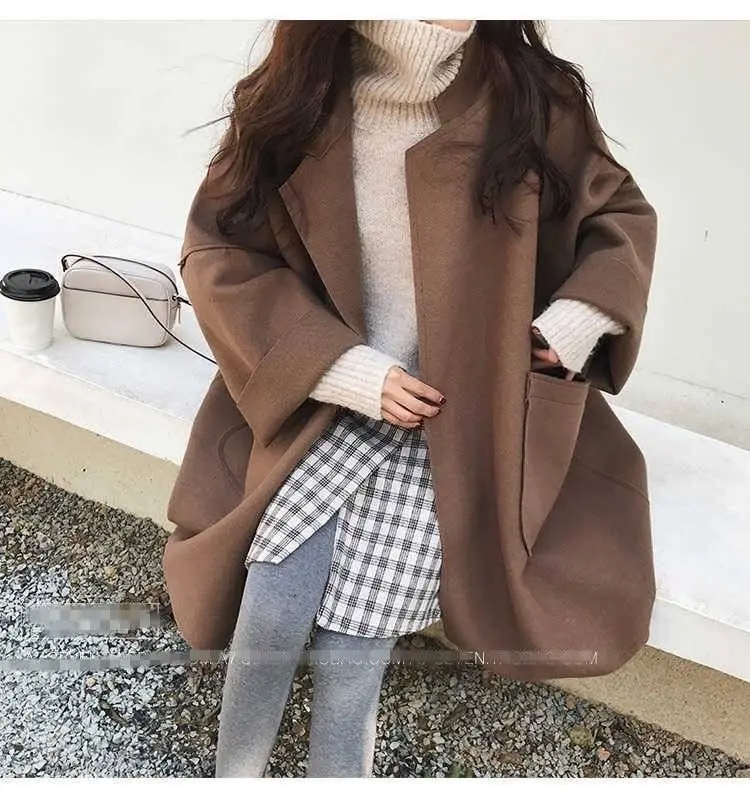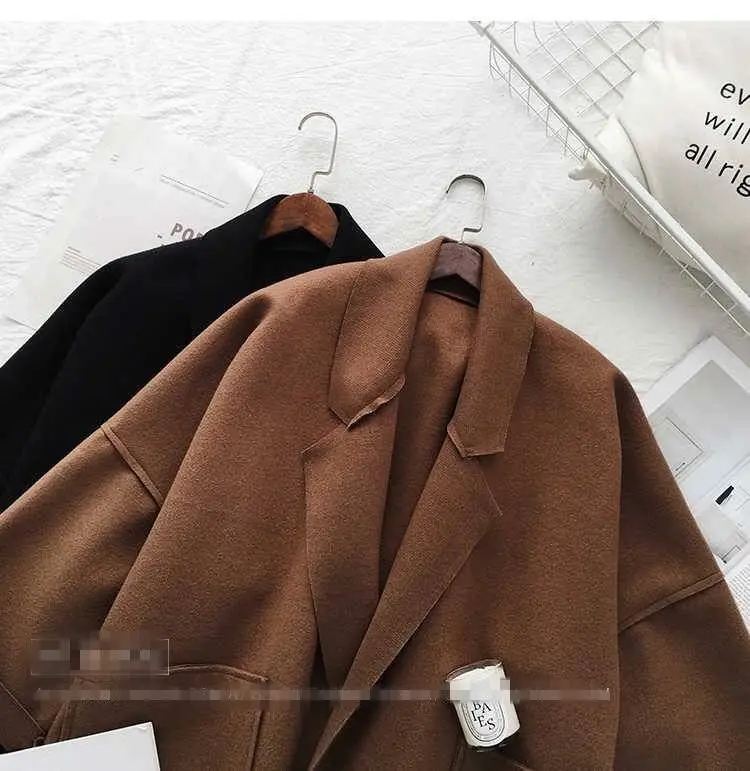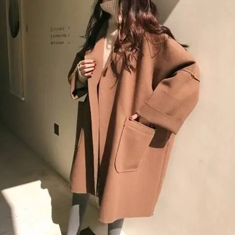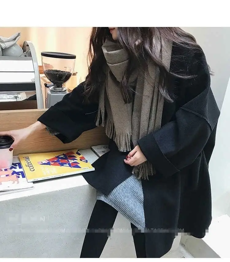 Женское длинное кашемировое пальто, свободное кашемировое пальто из...
