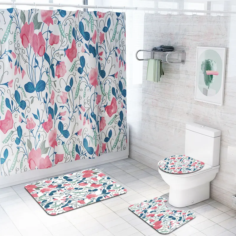 Водонепроницаемая занавеска для душа, Цветочный Коврик для ванной с принтом, коврик из микрофибры для ванной, нескользящий напольный коврик, набор впитывающих подушек для сиденья унитаза