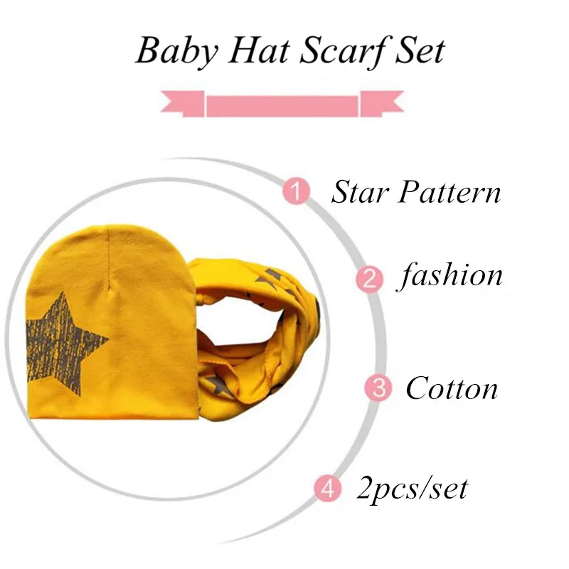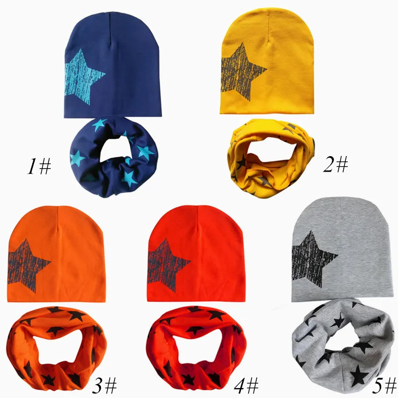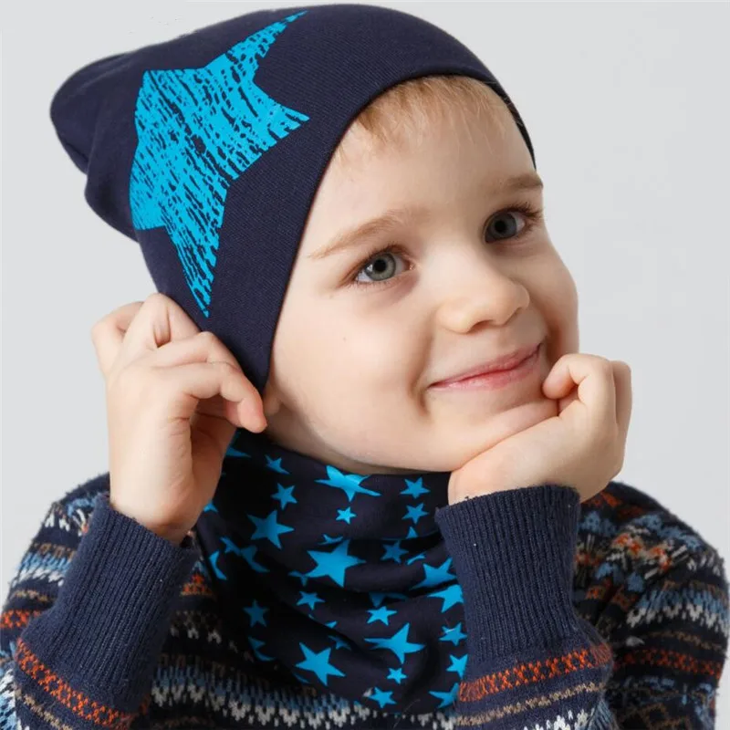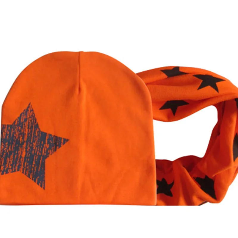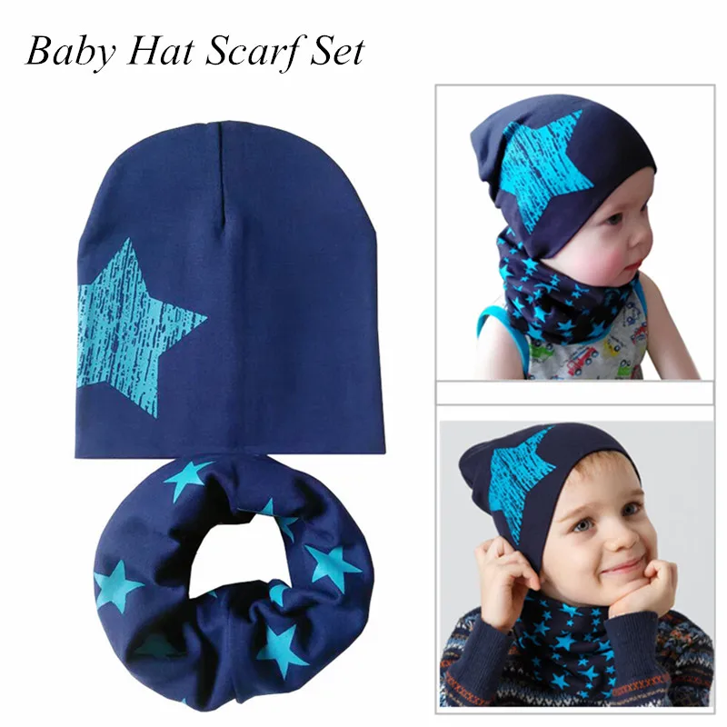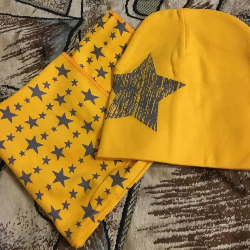 Модные детские шапки 2 шт.компл. осень и зима детская теплая хлопковая шапка-шарф с рисунком звезд