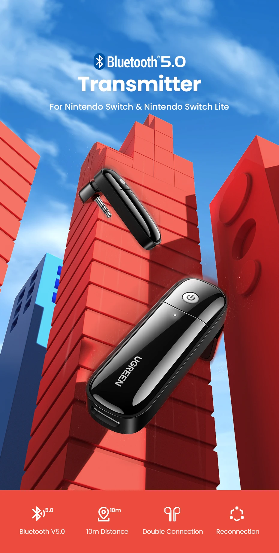 UGREEN Bluetooth 5,0 передатчик для Nintendo Switch Lite 3,5 3,5 мм аудио адаптер беспроводные Bluetooth наушники
