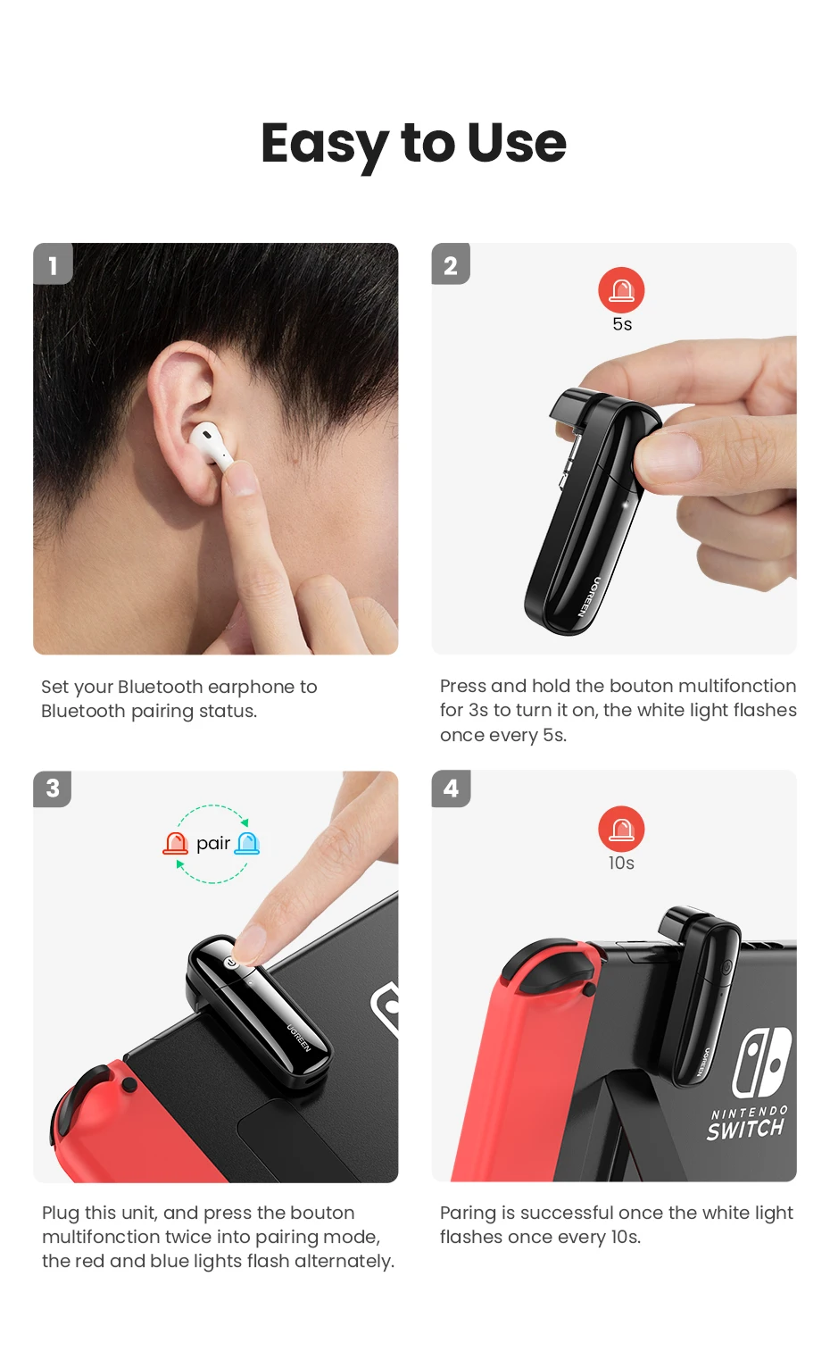 Продукт работает отлично, никаких проблем с функцией. Однако, он кажется очень дешевым, что является странным, так как UGREEN делает продукцию наивысшего качества. Важно отметить, что этот продукт больше не требуется для nintendo switch, так как коммутатор с обновлением программного обеспечения имеет встроенный Bluetooth. Однако он идеально подходит для любых вещей с разъемом для наушников. Идеально подходит для любого iPod-для справки я использовал с iPod 4th gen, 5th gen и 6th gen. Также подойдет для iPod mini, nano и даже shuffle, если вы хотите. Будет работать с толстой задней частью ipod, так как в устройстве есть немного гибкого трубопровода.