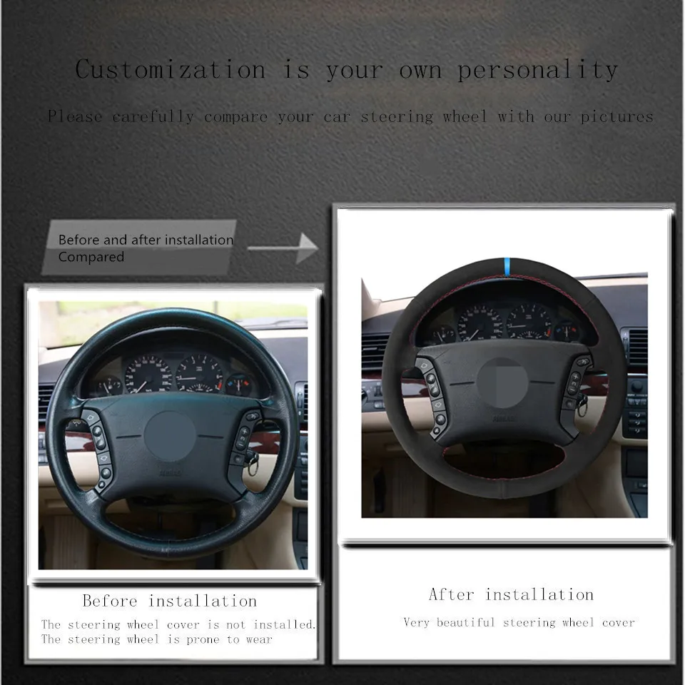Ручная работа DIY черный замшевый чехол рулевого колеса автомобиля для BMW E46 1998-2004 E36 1995-1997 X3 E83 X5 E53 E38 1994-2001 E31 1996