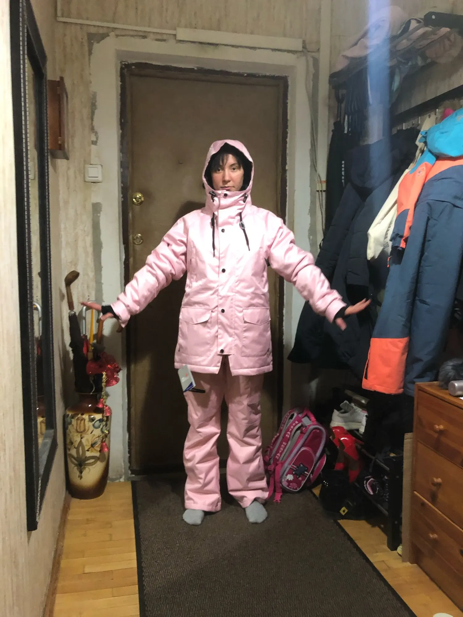 Костюм шёл две с половиной недели. Двумя пакетами. С разницей дня в 2-3 пришли. Он, как мне кажется, очень тёплый. Качество хорошее. В принципе всё как на картинке. У меня рост 163, заказала комплект штаны xs и куртка s. По размеру хорошо. Свободно. В s штанах уже утонула бы. На штанах и лямки и вот этот дополнительный пояс отстёгивается. Куртка тоже с внутренним поясом (как во всех горнолыжных). На капюшоне кулиска есть. Куртка очень свободная. Рукава длинные, но для меня это не проблема. Мембрана, как и описана. Вентиляция - небольшие вырезы есть и на куртке и на штанах. Карманов много в костюме. Единственное - я не понимаю что за ткань верхняя. Она явно непродуваемая, непромокаемая, но совсем не по типу клеёнчатой (даже не знаю как обьяснить), а в сторону хлопка. Твёрдая. Матовая. Не шелестит при ходьбе. И что меня смущает - это то, что она мнётся. Я не придирчива к этому, просто впервые встретила такое. Это Единственное на что обратила внимание. Короче, костюм супер!!