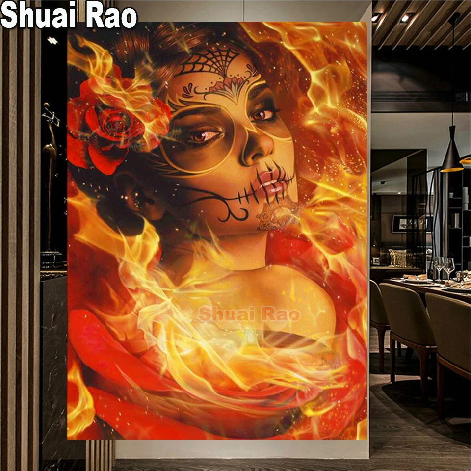 Картина с изображением женщины с изображением сахарного черепа, 5D кристалл, вышивка, Рождественская живопись, подарок на Хэллоуин,