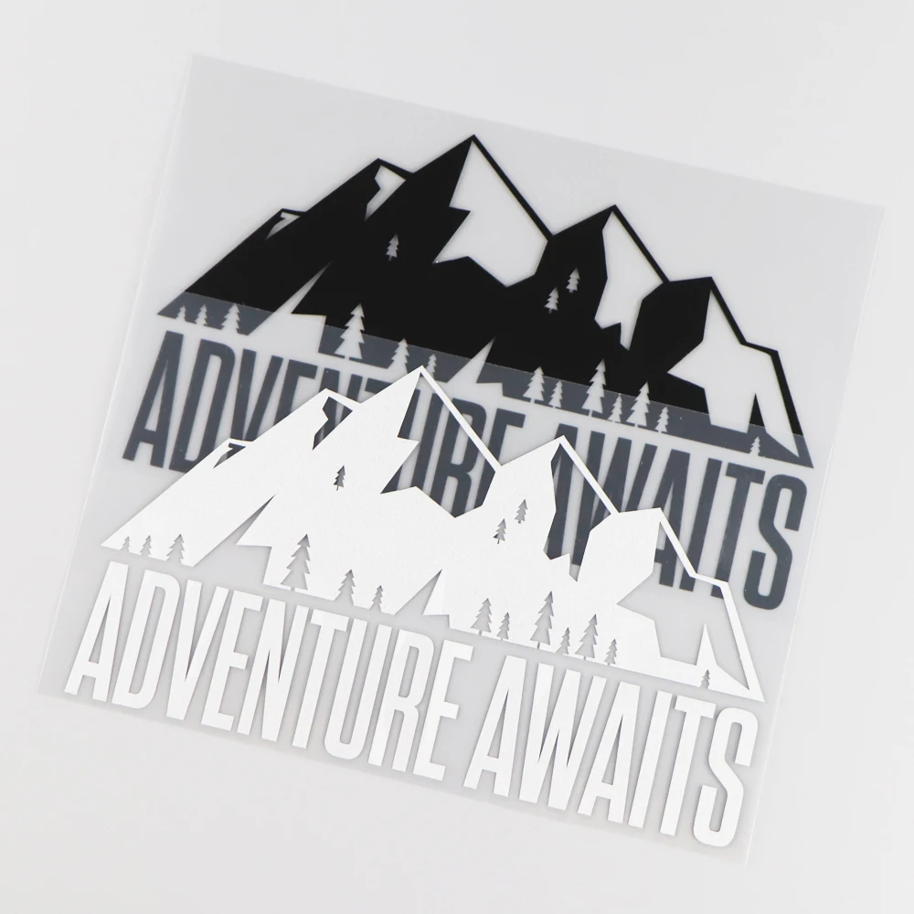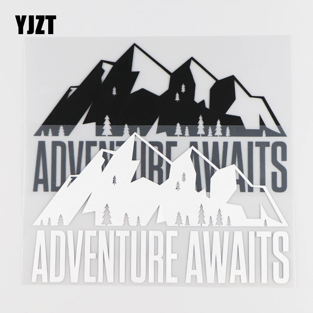 YJZT 16,2x9,7 см Приключения ждет Автомобиля Стикер Украшение виниловые наклейки мультфильм рисунок гор черныйсеребристый 4C-0059