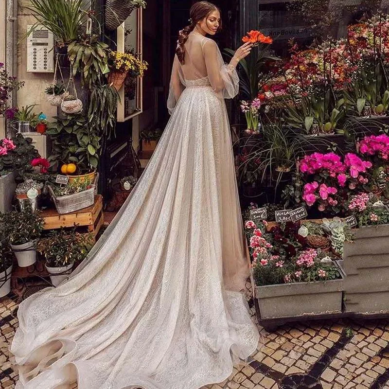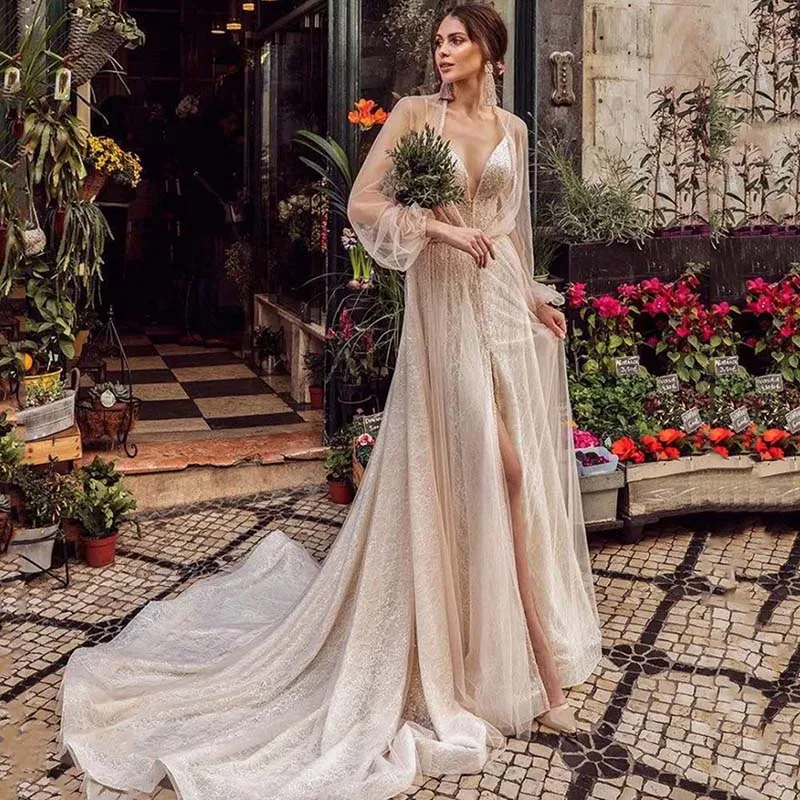 Свадебные платья с длинным рукавом и V-образным вырезом, 2022, фати...