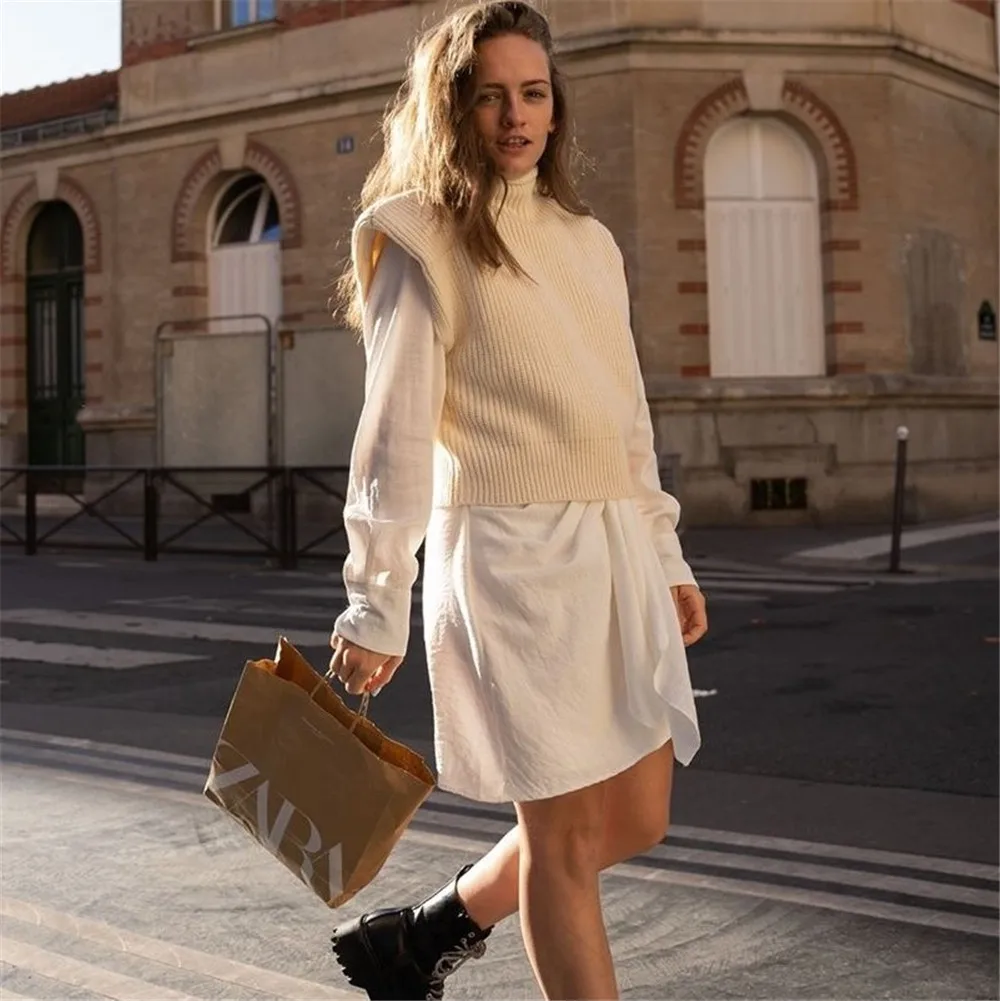 Женский вязаный жилет без рукавов, белый пуловер с подплечниками, повседневный джемпер, Осень-зима 2020