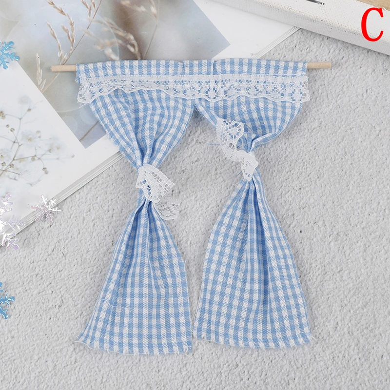 Симпатичные кукольные миниатюры с решеткой и кружевом, розовая хлопковая занавеска для кукол в масштабе 112, дом, мебель для спальни, декор, Acc