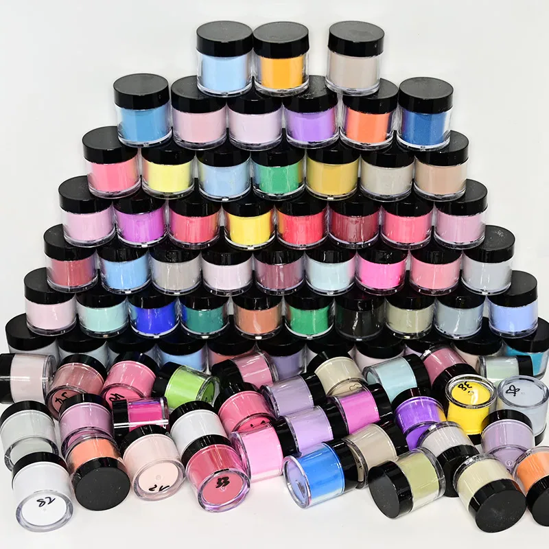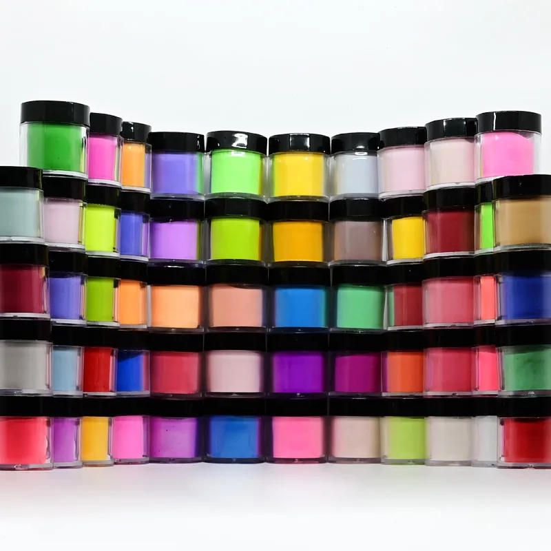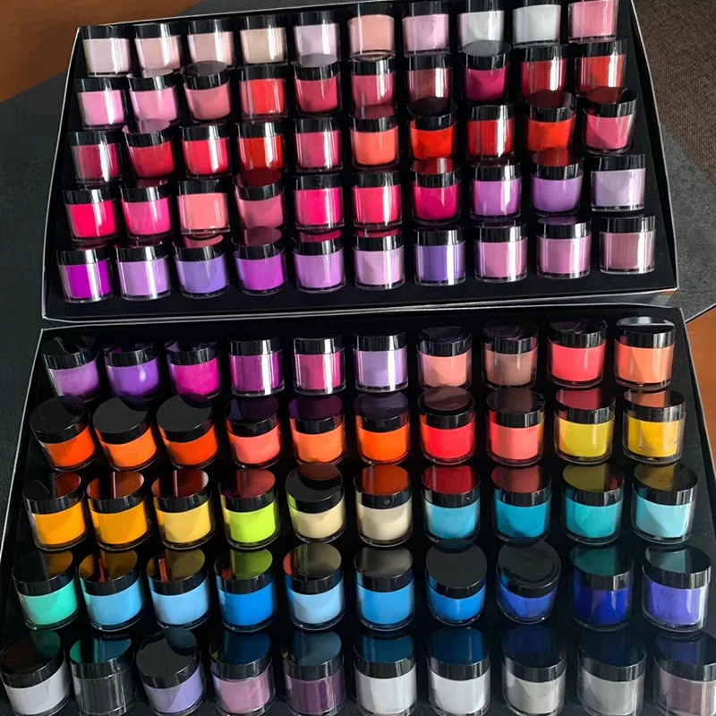 Магазин предлагает более 90 цветов пользовательских акриловых порошков и порошков, включая твердые цвета.