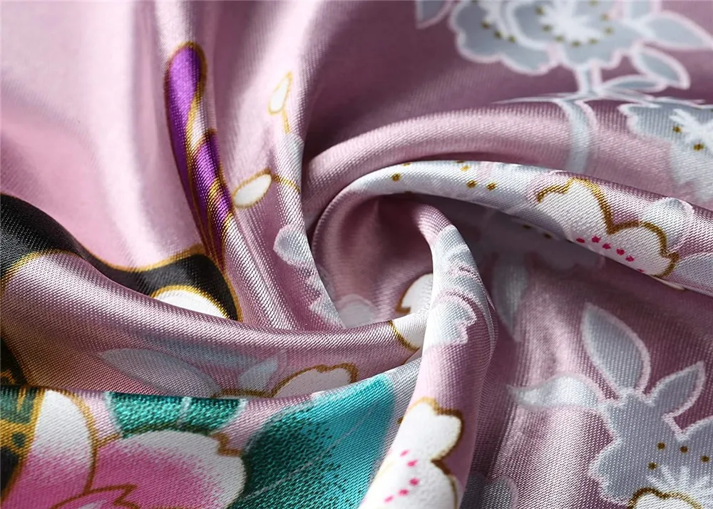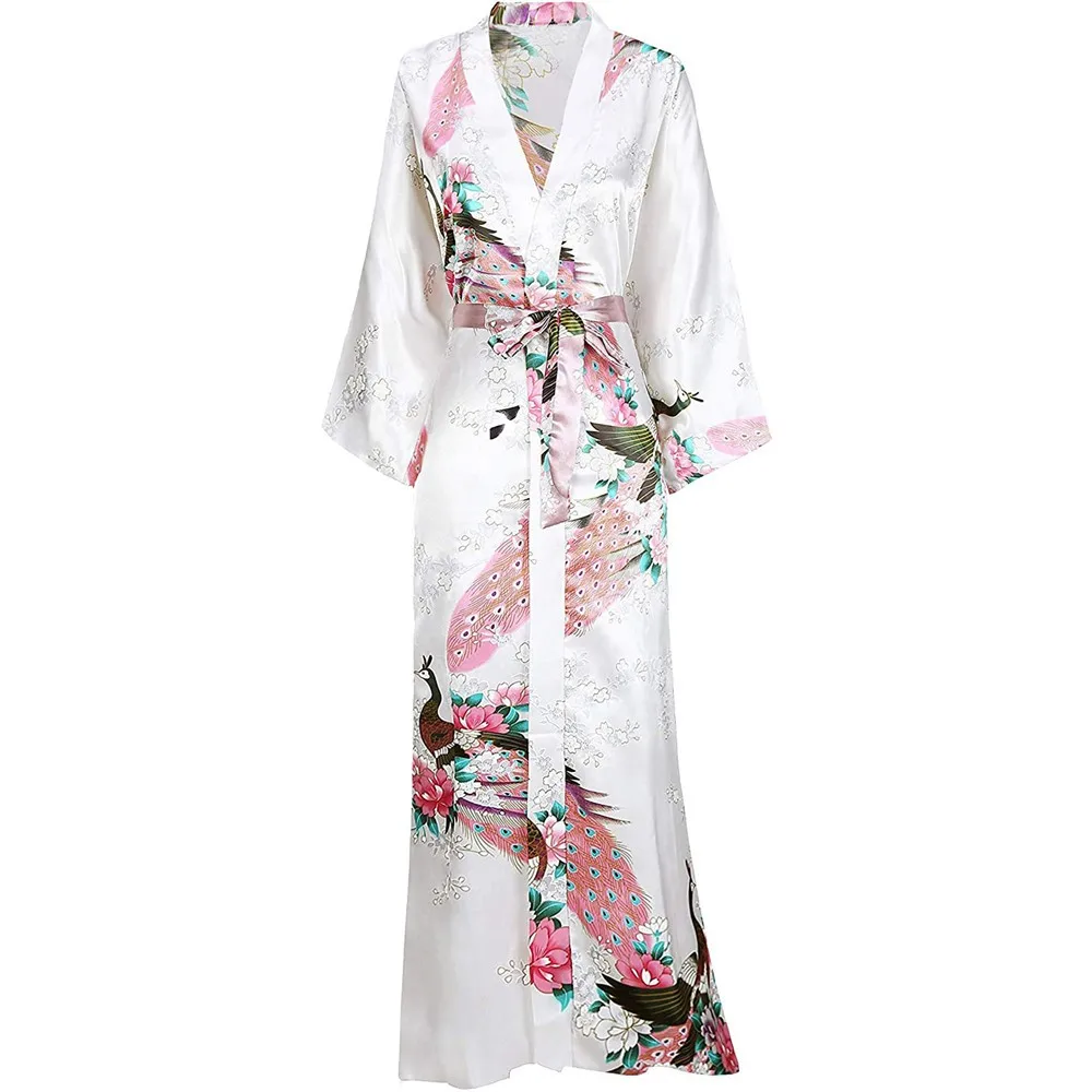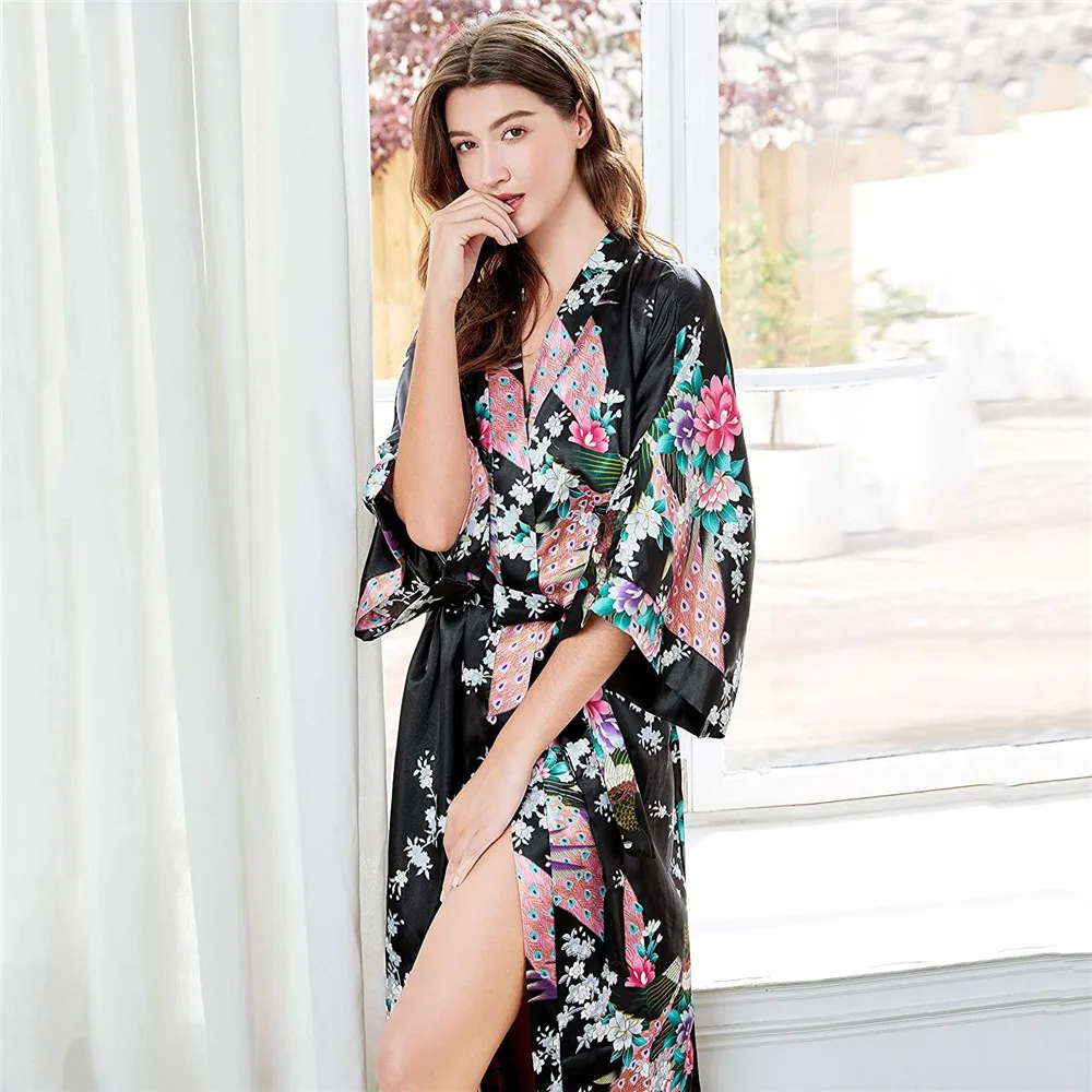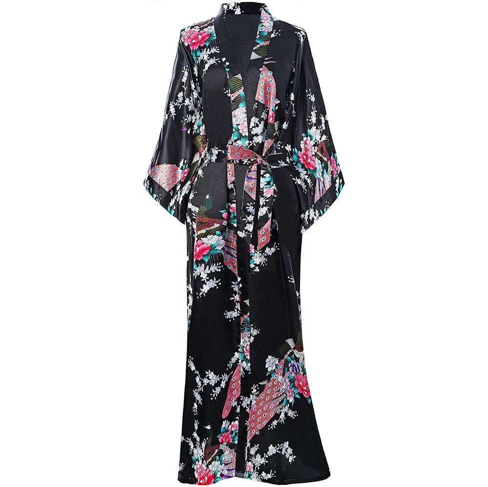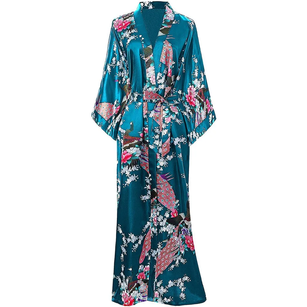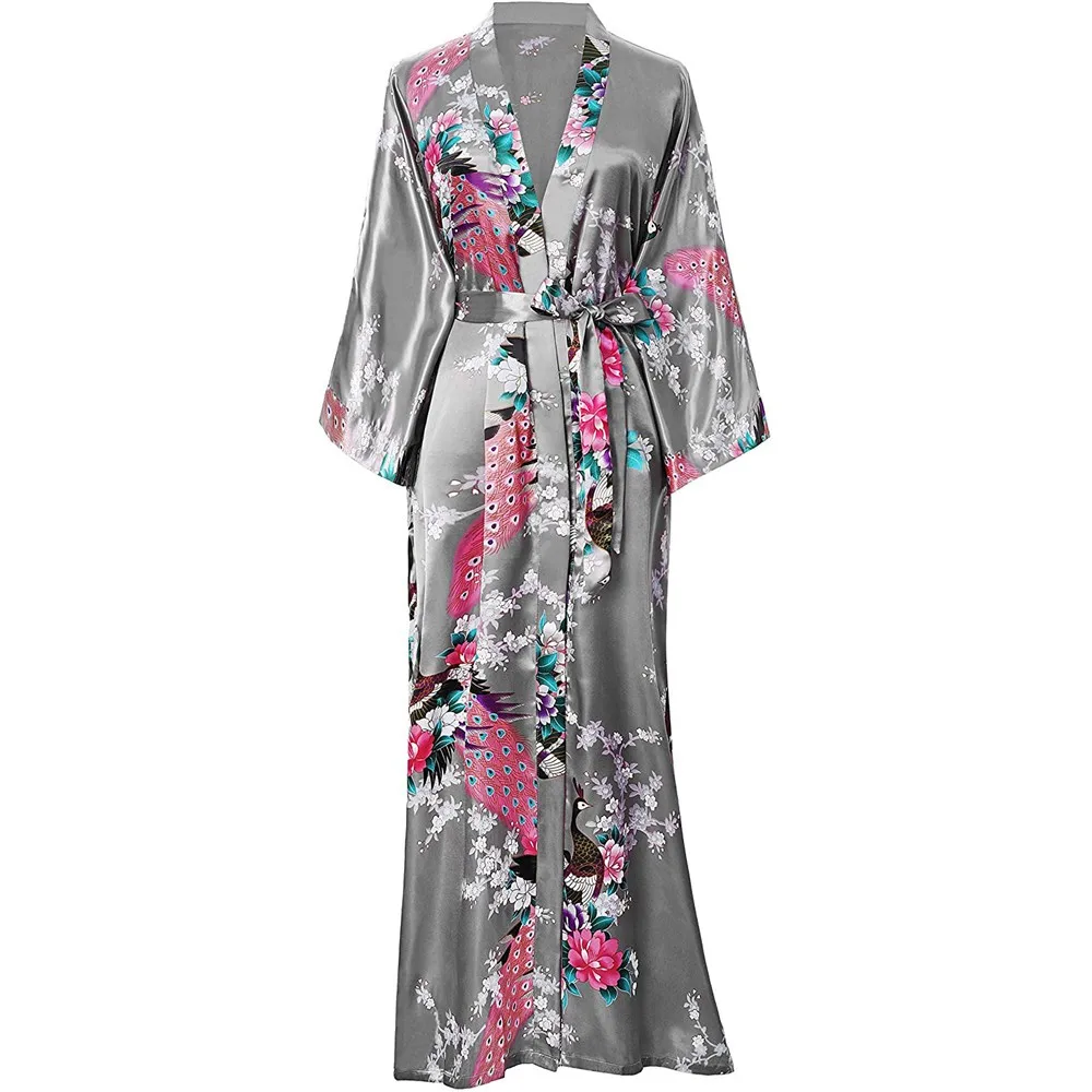 Халат-кимоно Женский длинный с принтом, ночная рубашка, одежда для сна, шелковая атласная Домашняя одежда, большие размеры, лето-весна