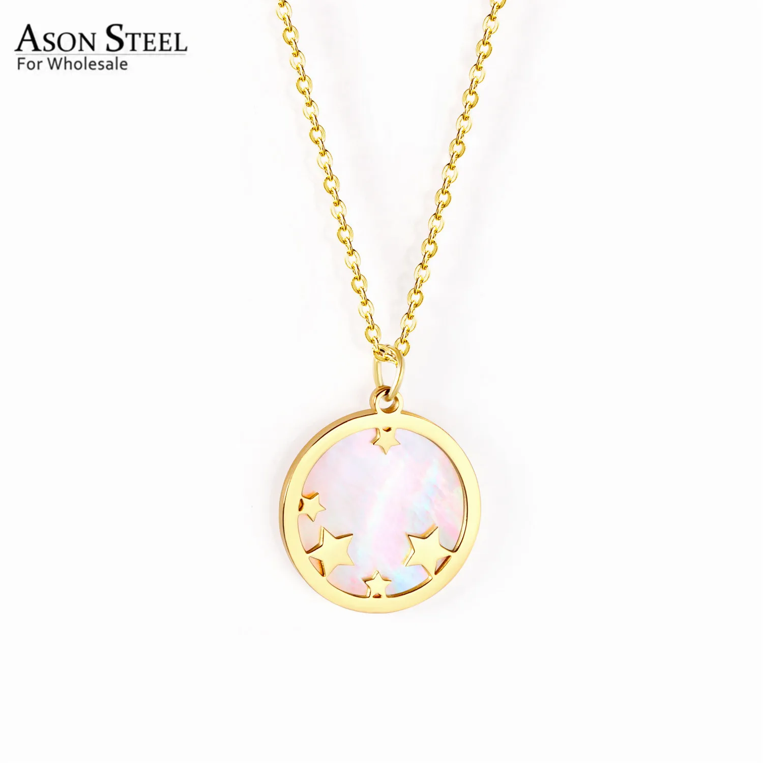 ASONSTEEL модное Золотистое Ожерелье из нержавеющей стали 18 мм с круглой звездой и ракушками для женщин, вечерние ювелирные изделия в подарок