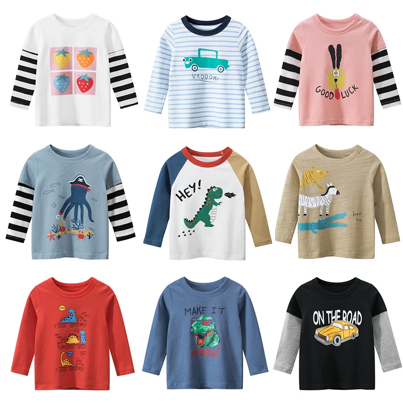 Детские футболки для мальчиков, Детские Топы с длинным рукавом и мультипликационным рисунком, детская одежда из хлопка на осень и весну, футболки для маленьких мальчиков и девочек