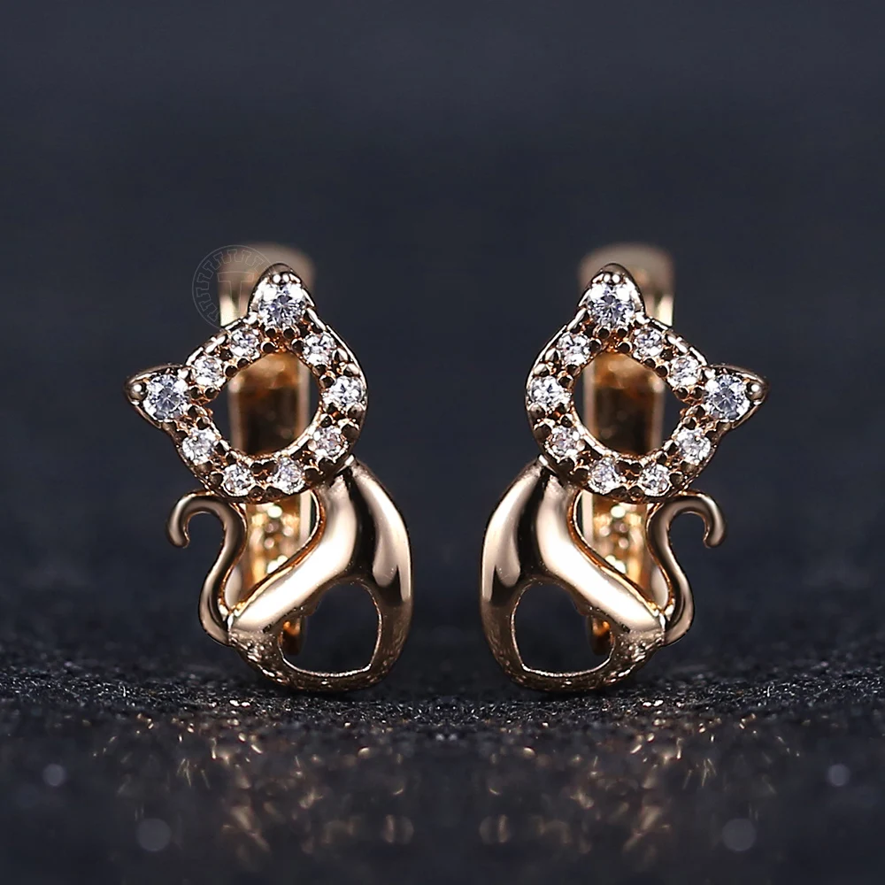 Женские серьги с кошечкой Китти, милые серьги-гвоздики из розового золота 585 пробы с прозрачным кубическим цирконием для маленьких домашних животных, свадебные украшения для девочек, LGE293A
