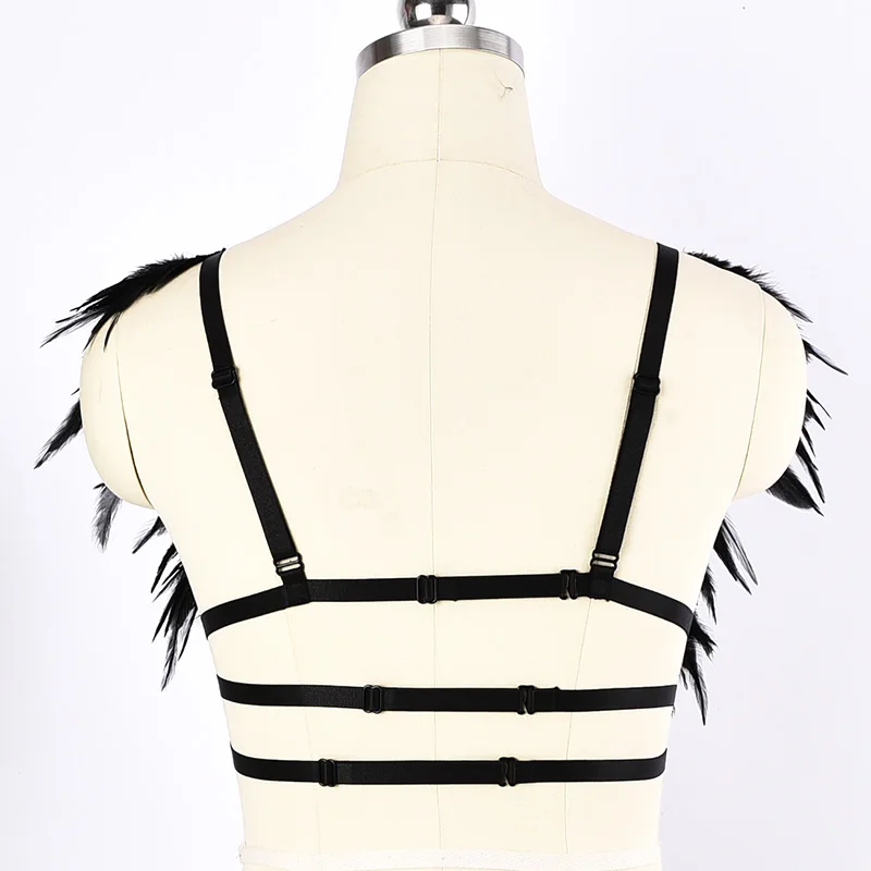 Подвязка с перьями, Пастельная, Готическая, черная, обвязка для тел...