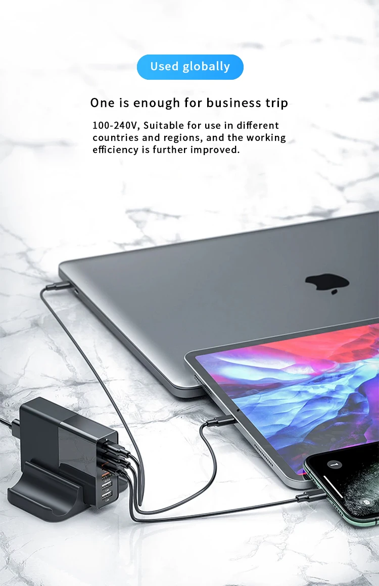 Описание:Таблица функций: Общая мощность: 75 Вт (обзор:Это 6-порт выход многопортовое зарядное устройство с максимальным выходом 75 Вт высокой мощности, с питанием от источника эффективности. На выходе используется новейшая интеллектуальная технология распределения мощности,Для достижения максимальной оптимизации мощности. Выход имеет 2 USB-C интерфейсов и 4 USB-A интерфейсов, максимальный выход C порта 65 Вт, A3, A4 фиксированный 5 В/2 А выходМожет удовлетворить источник питания большинства ноутбуков, мобильных телефонов, часов, наушников и других устройствСовместимость с несколькими протоколами зарядкиАдаптер питания может заряжать ноутбук, а также поддерживает мобильные телефоны QC3.0, плоский светильник и другие ноутбуки, поддерживающие протокол PD3.0. Умный выход не повредит телефонВстроенный чип интеллектуального управления, в соответствии с различными моделями, требуется интеллектуальное соответствие и стабильный выходной ток, быстрая зарядка, не повреждая аккумулятор.Характеристики:Номер продукта: четырехпортовый Интеллектуальный PD Быстрая зарядка 48 ВтЦвет: черныйРазмер изделия: 9,6*7*3 см (без основания)Провод: 150 смМатериал: огнеупорный материал из поликарбонатаВход: 100-220V 50/60HzВыход: 48 Вт (PD одиночный порт максимум 45 Вт)Интерфейс: 3USB/1 * PD.Номер продукта: пятипортовый Интеллектуальный PD Quick Charge 65WЦвет: черныйРазмер изделия: 9,6*7*3 см (без основания)Шнур питания: 150 смМатериал: огнеупорный материал из поликарбонатаВход: 100-220V 50/60HzВыход: 65 Вт (PD одиночный порт максимум 65 Вт)Интерфейс: 3 * USB/2 * PDМодель продукта: 6-портовый Интеллектуальный PD Быстрая зарядка 75 ВтЦвет: черныйРазмер изделия: 9,6*7*3 см (без основания)Шнур питания: 150 смМатериал: огнеупорный материал из поликарбонатаВход: 100-220V 50/60HzВыход: 75 Вт (PD одиночный порт максимум 65 Вт)Интерфейс: 4 * USB/2 * PDПосылка включает в себя:1 * Быстрая зарядка pd1 * основание1 * зарядный кабель1 * Инструкция