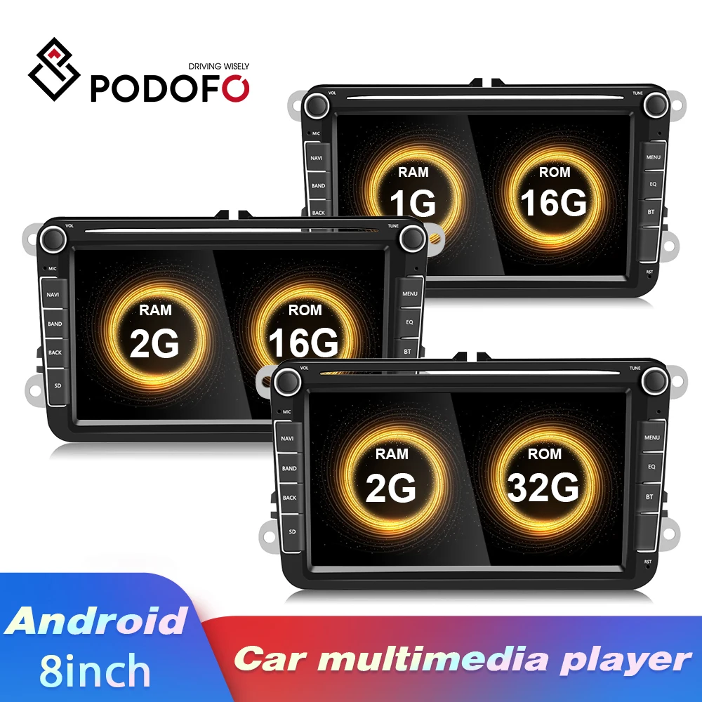 Автомагнитола Podofo 2 + 32 ГБ, мультимедийный плеер на Android, с GPS, для VWVolkswagenGolfPassatb7b6SkodaSeatOctaviaPoloTiguan, типоразмер 2 din
