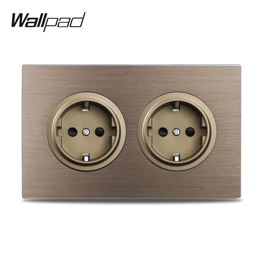 Wallpad L6 двойная Европейская настенная розетка электрическая розетка Schuko коричневая матовая алюминиевая панель 146*86 мм