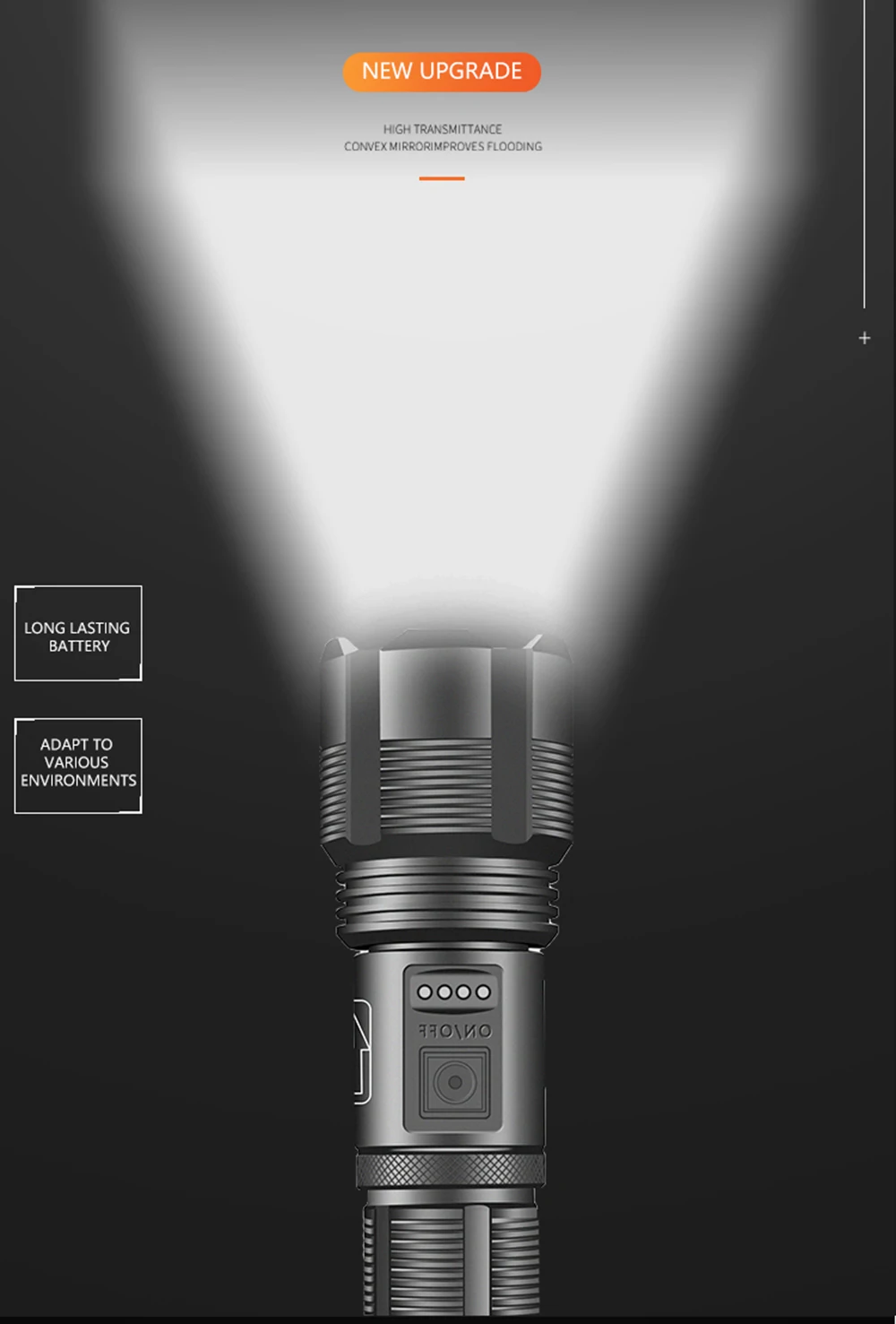 Фонарик XHP199, 16 ядер, перезаряжаемый от USB, 5 режимов, аккумуля...