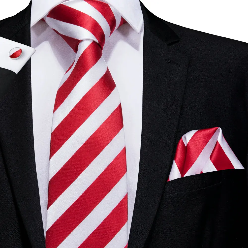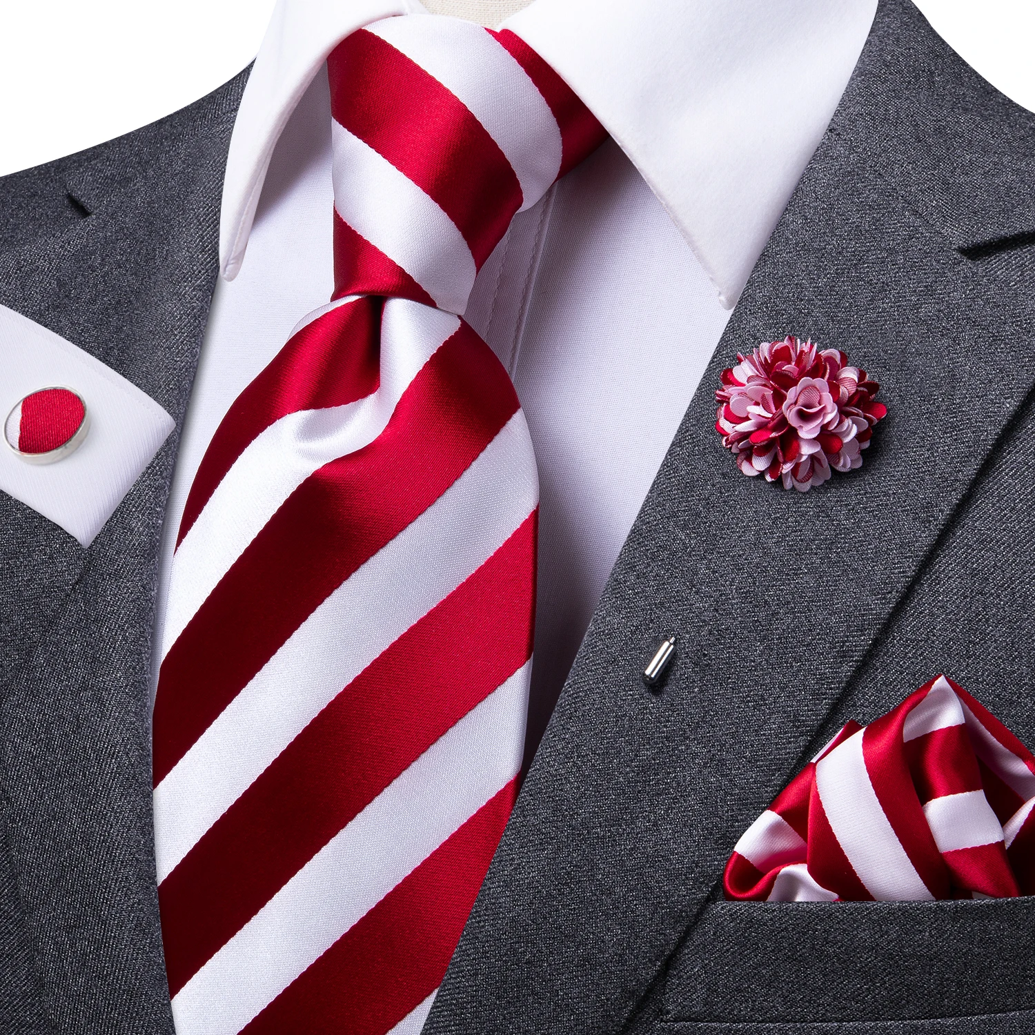 Hi-Tie мужской галстук с зажимом Красные Полосатые галстук для мужчин Подарочная коробка для мужчин роскошный Шелковый комплект искусственной кожи галстук для официального свадебного платья