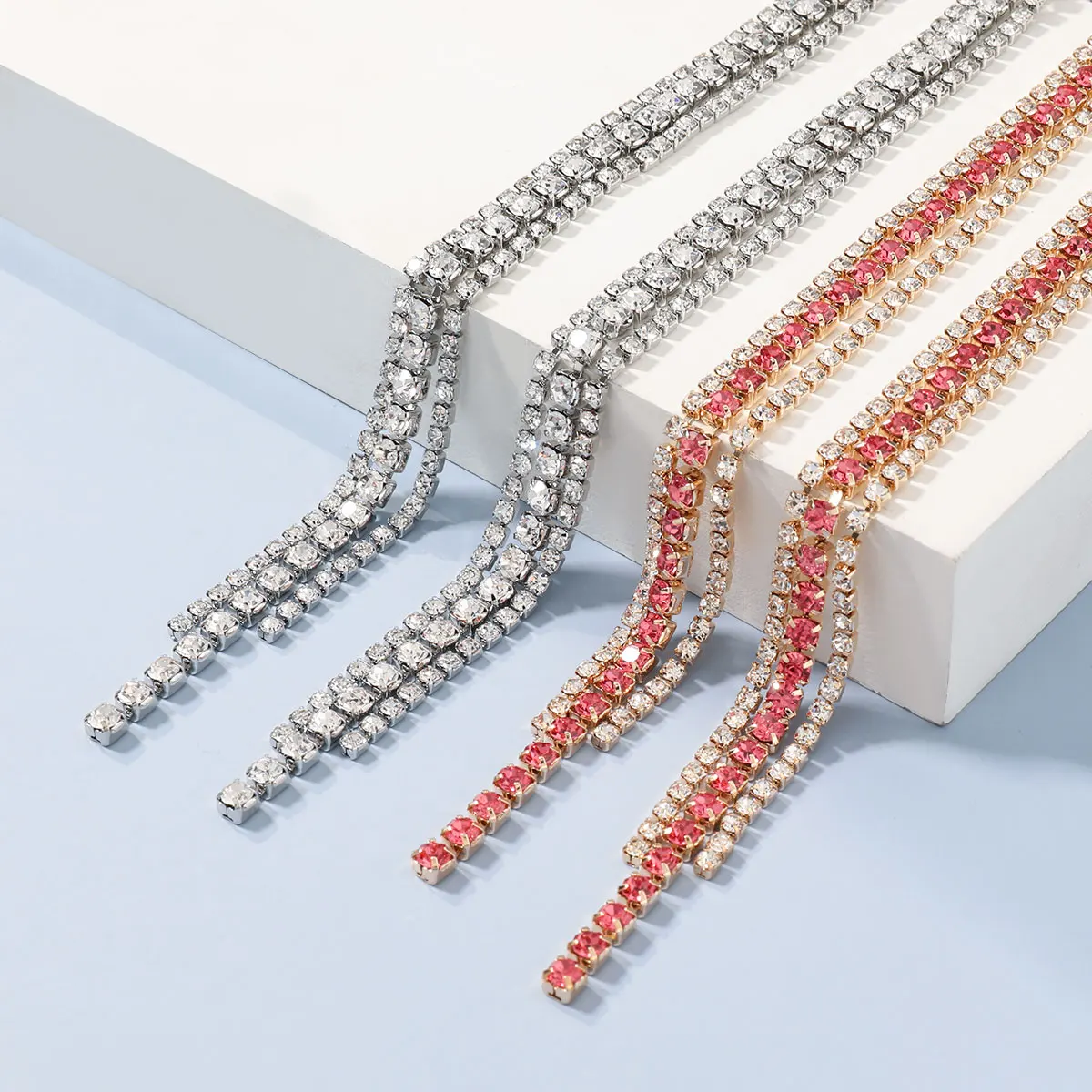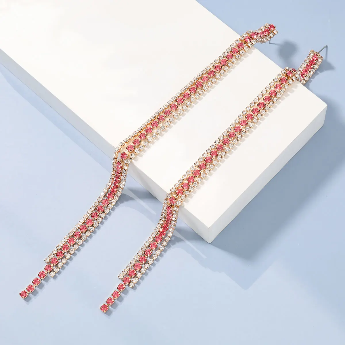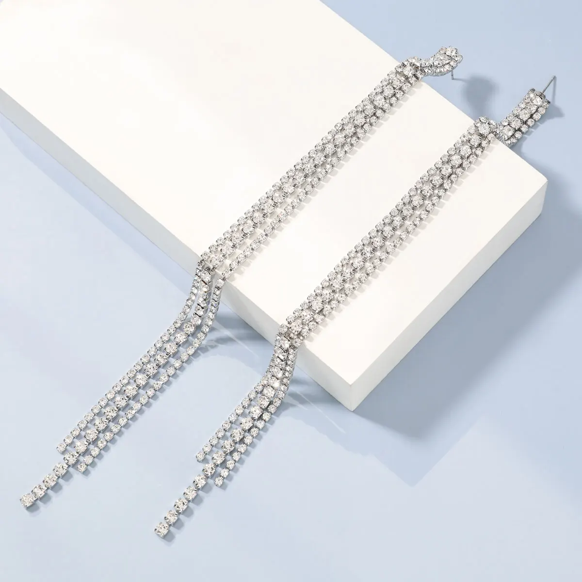 Женские Висячие серьги на длинной цепочке, блестящие стразы