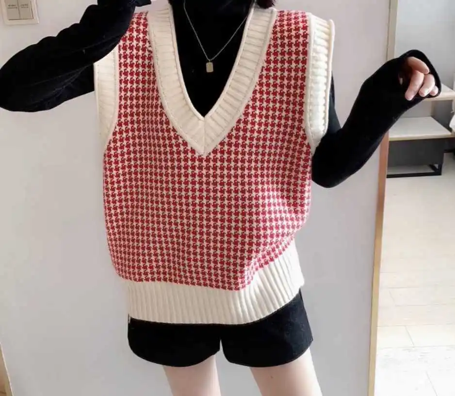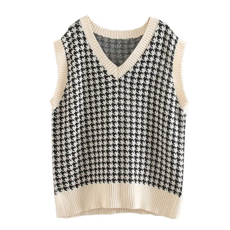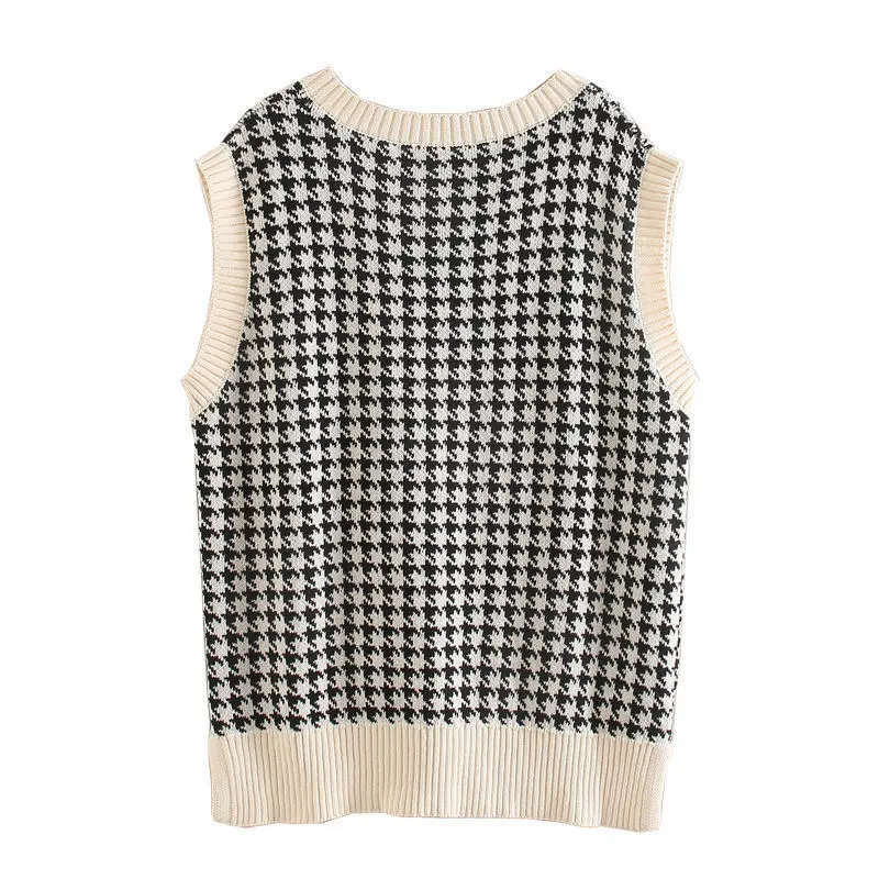 Номер моделиHoundstooth Plaid Sweater Vest Women