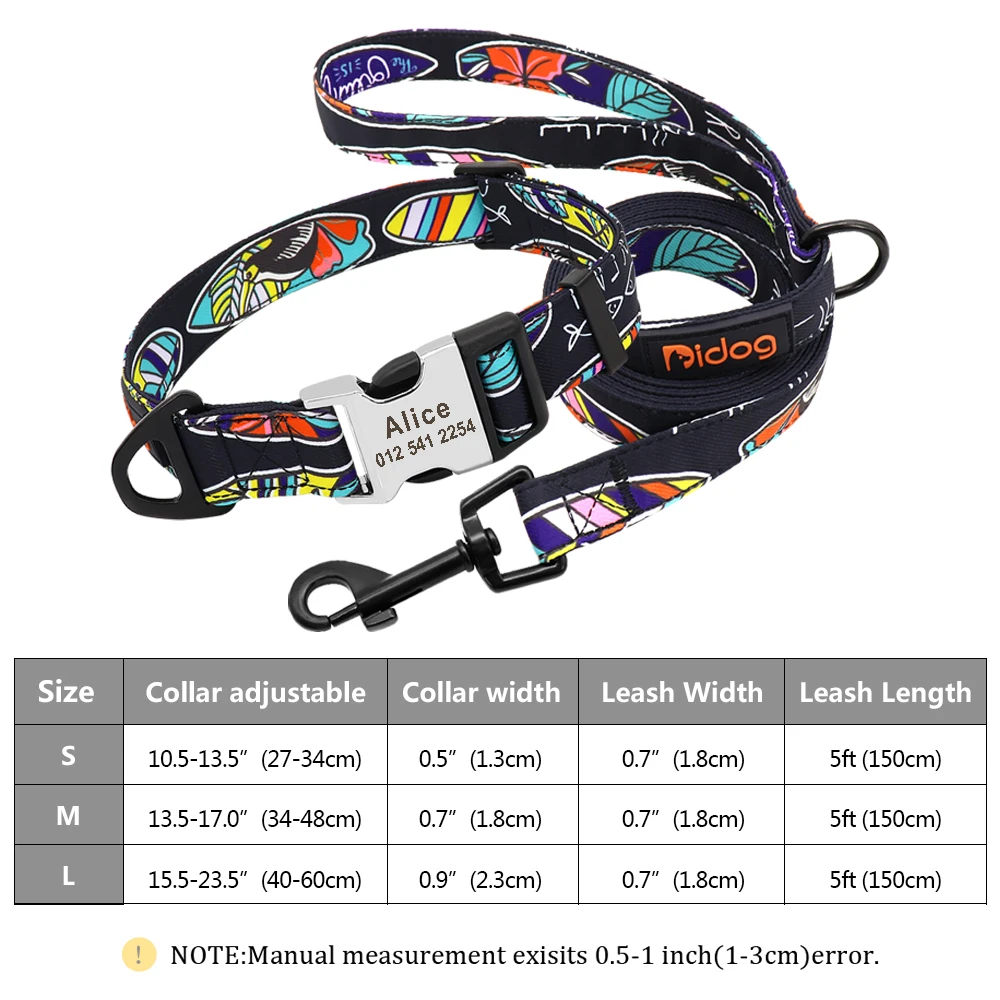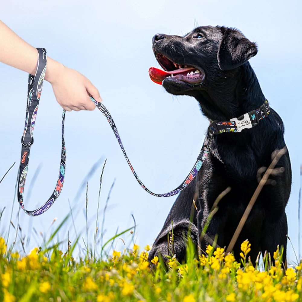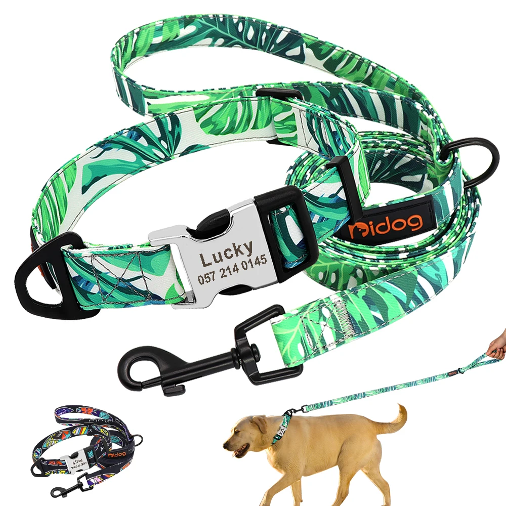 Набор из нейлоновой собачий ошейник с принтом и поводка, для прогулок с питомцами, с гравировкой под заказ