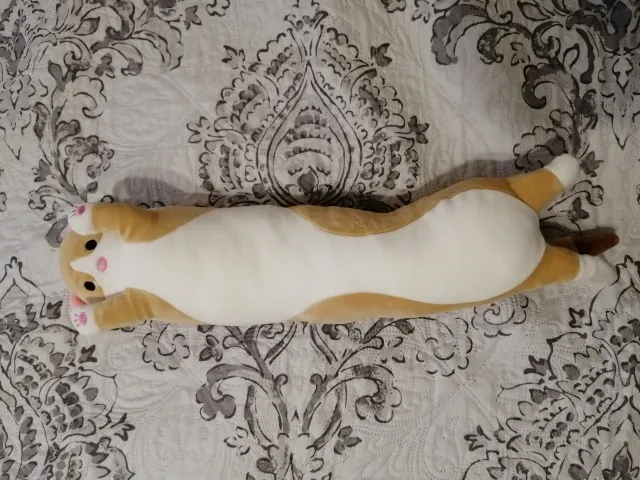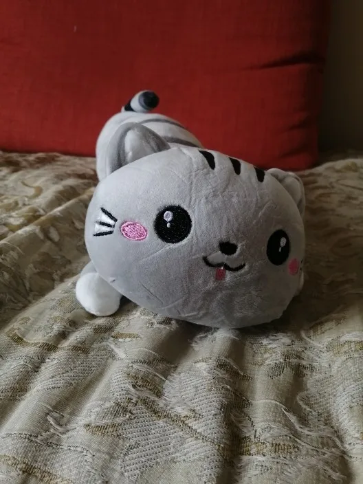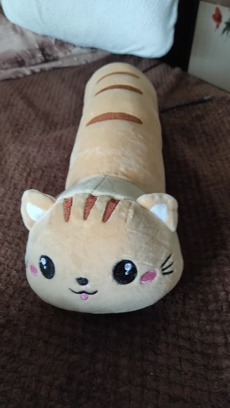 Très jolie peluche chat, toute douce, j'ai pris le modèle 70cm il est parfait pour un lit enfant!