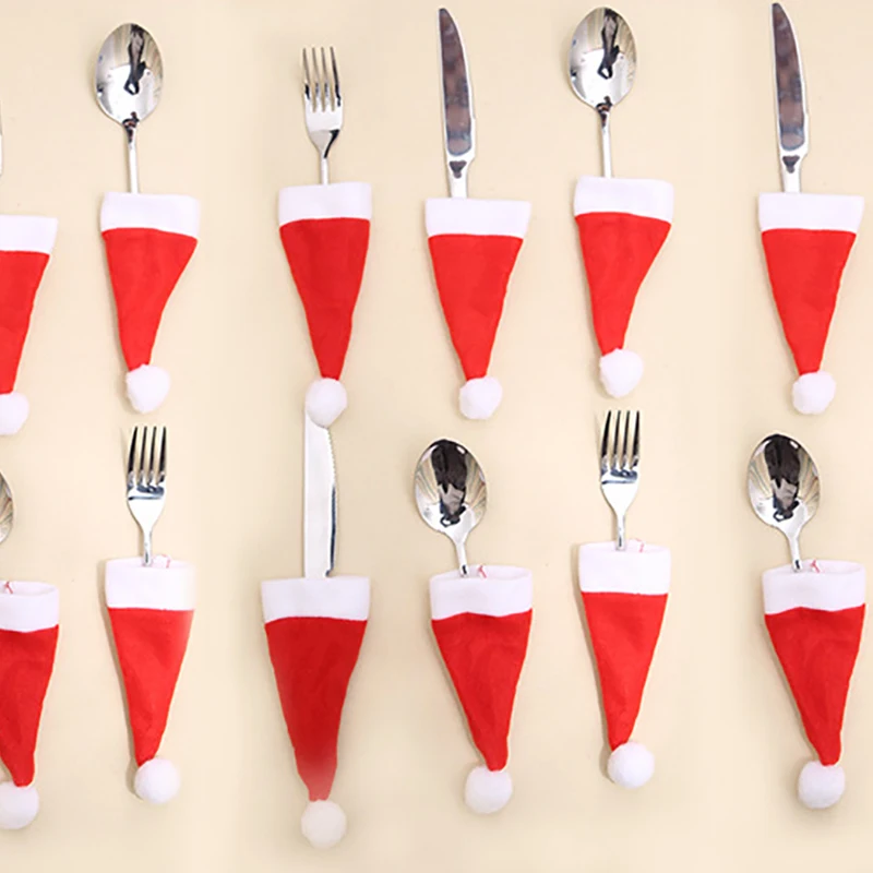 10 шт.лот Мини Рождественская шляпа 2022 Держатель для посуды сумка...