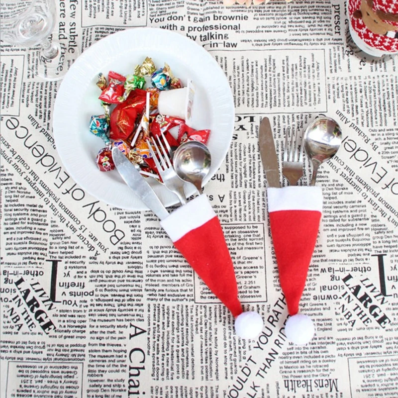 1 шт. рождественские колпачки, мешки для ножа, ложки, вилки, пылеза...