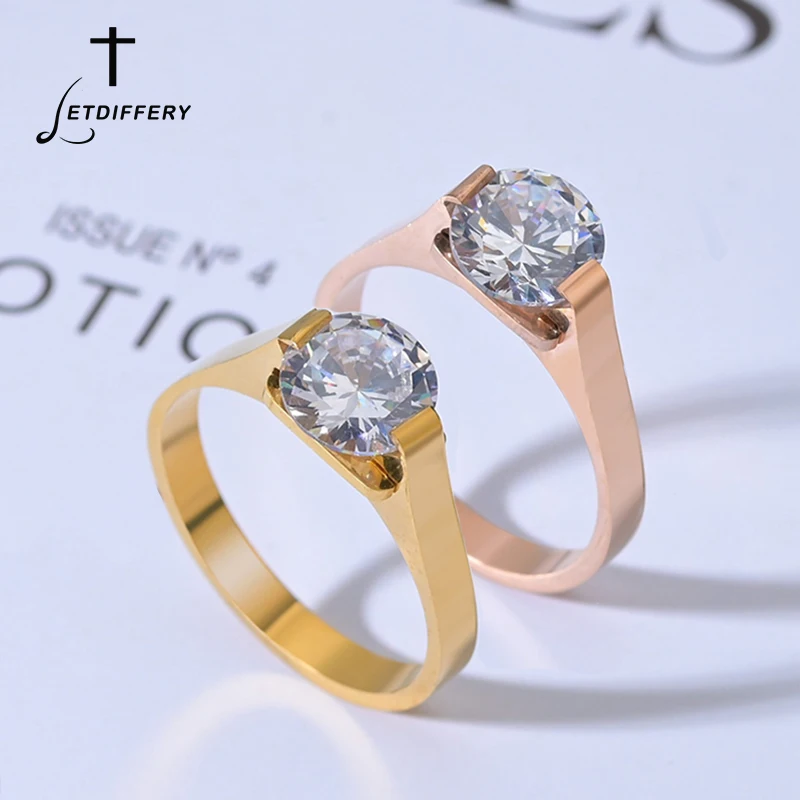 Женское Обручальное кольцо из нержавеющей стали с большим кубическим цирконием, розовое золото, Прямая поставка, 2019